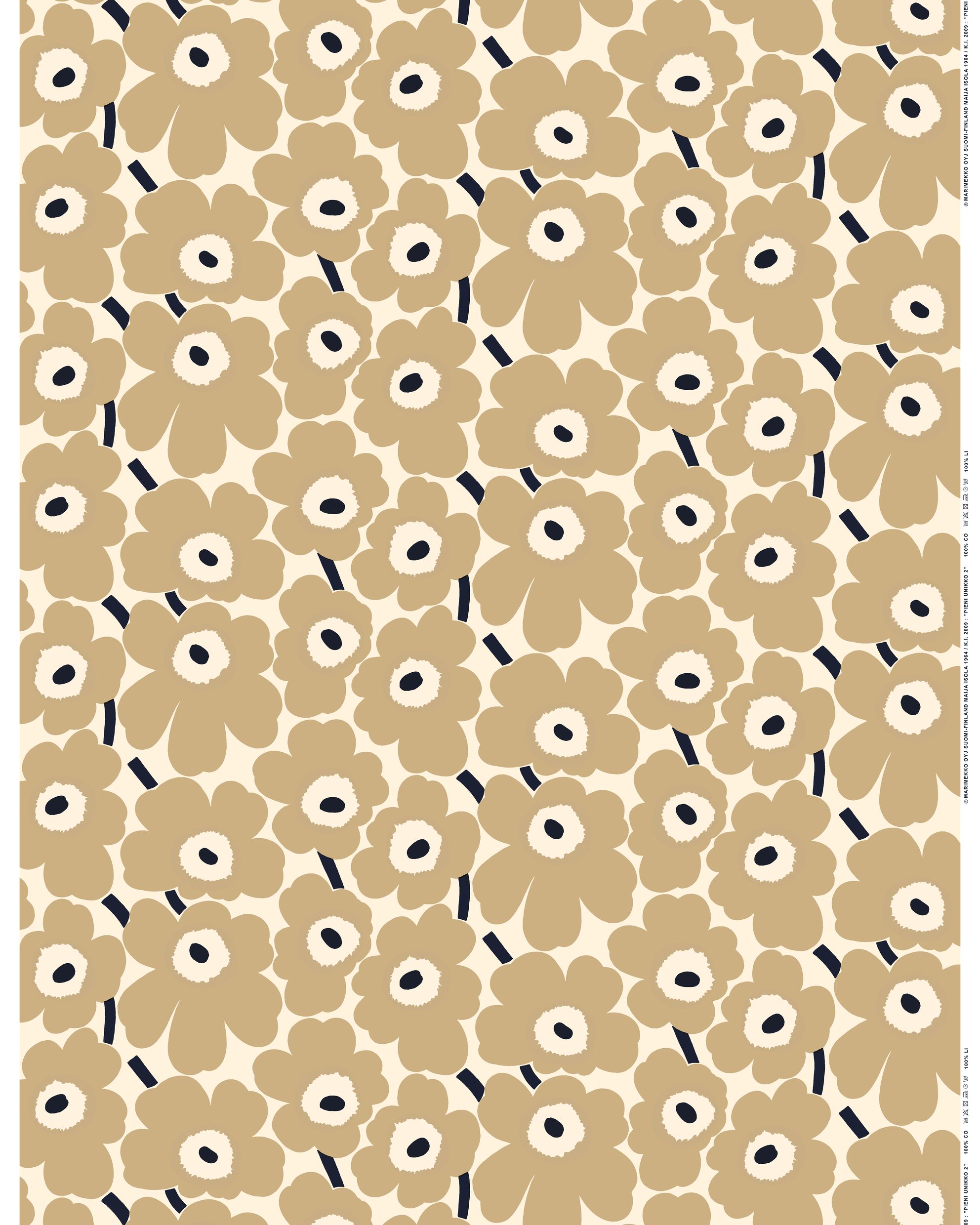 Marimekko Pieni Unikko Akryylipinno Puuvillakangas, luonnonvalkoinen, beige, tummansininen