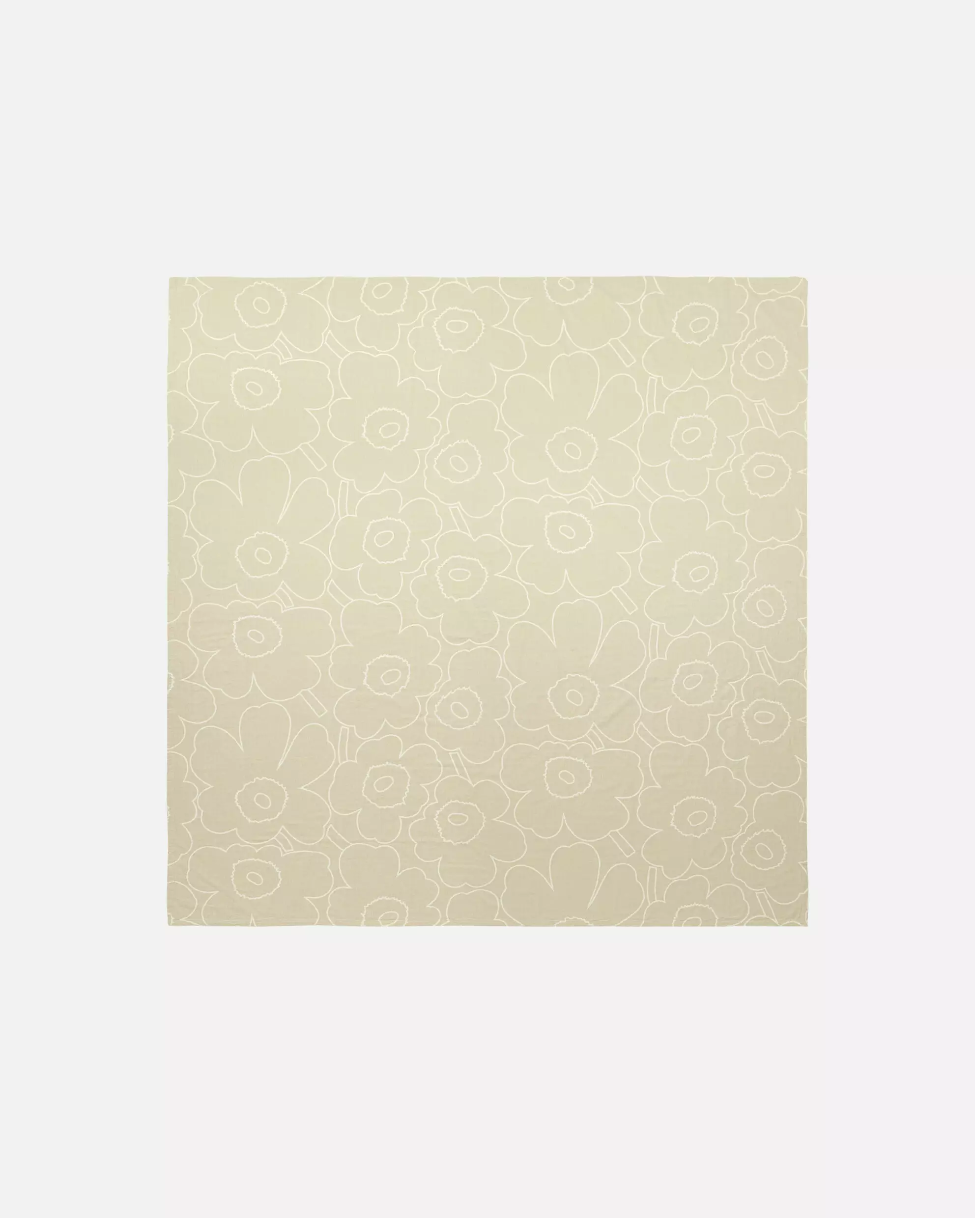 Tuplapäiväpeite on valmistettu luomupuuvillasta ja siinä on jacquard-kudottu Piirto Unikko -kuosi. Kaksipuolisessa päiväpeitteessä on toisella puolella vaalea tausta ja toisella tummempi tausta.