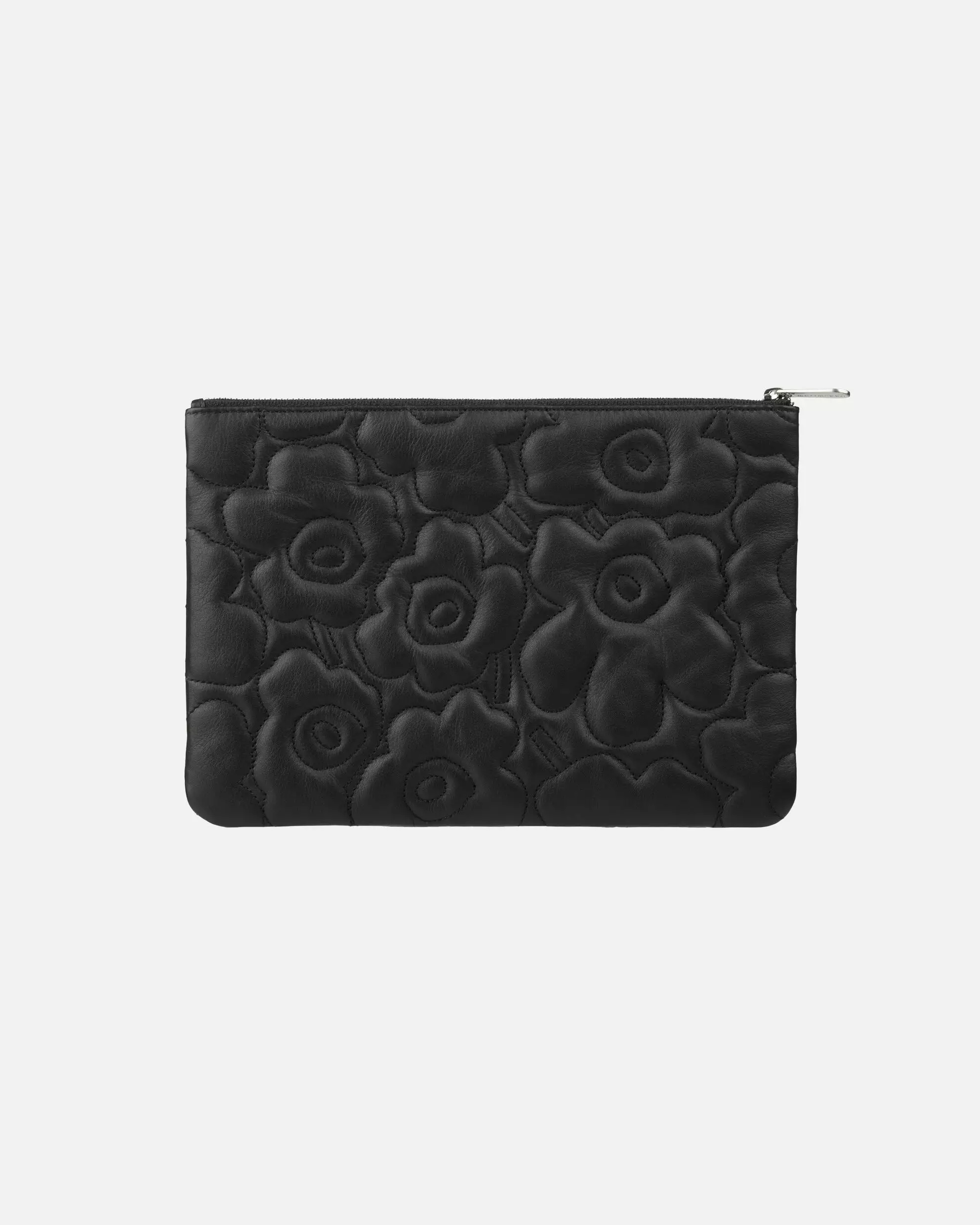 Tämä Marimekon Pouch Bag -käsilaukku on tyylikäs ja käytännöllinen asuste, joka tuo ylellisyyttä ja persoonallisuutta asukokonaisuuksiin. Laukku on valmistettu pehmeästä nahasta, jonka pintaan on tikattu Maija Isolan ikoninen Unikko-kuosi. Laukussa on vetoketjusuljenta ja sisävuori kierrätettyä polyesteria.