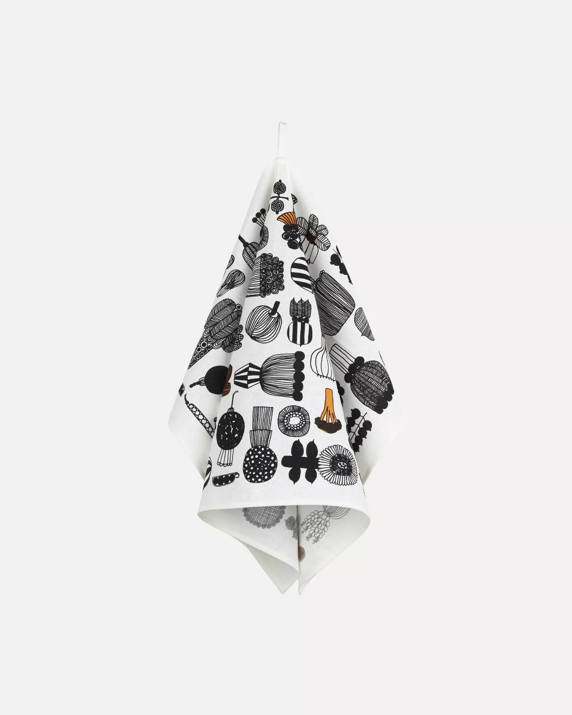 #marimekko #puutarhurinparhaat #keittiöpyyhe #pyyhe #puuvillapellava #valkoinen #musta #oranssi #maijaiisoli #suomalainendesign #helsinki #viro #kestävä #keittiövälineet #keittiötekstiilit #lahjaidea #luontoaihe #ruokateema