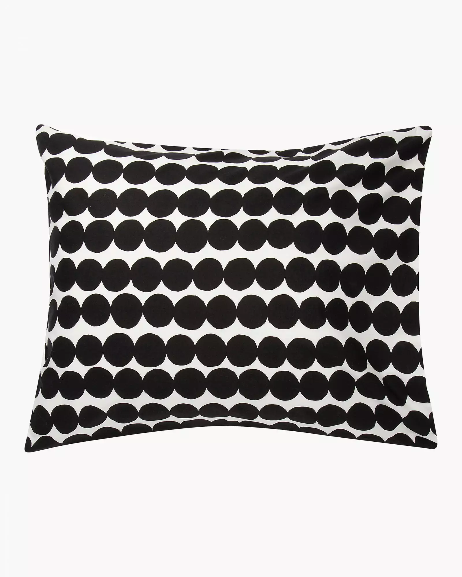 Perkaalipuuvillasta valmistetussa tyynyliinassa on Räsymatto-kuosi, ja siinä käytetty puuvilla on luomua.