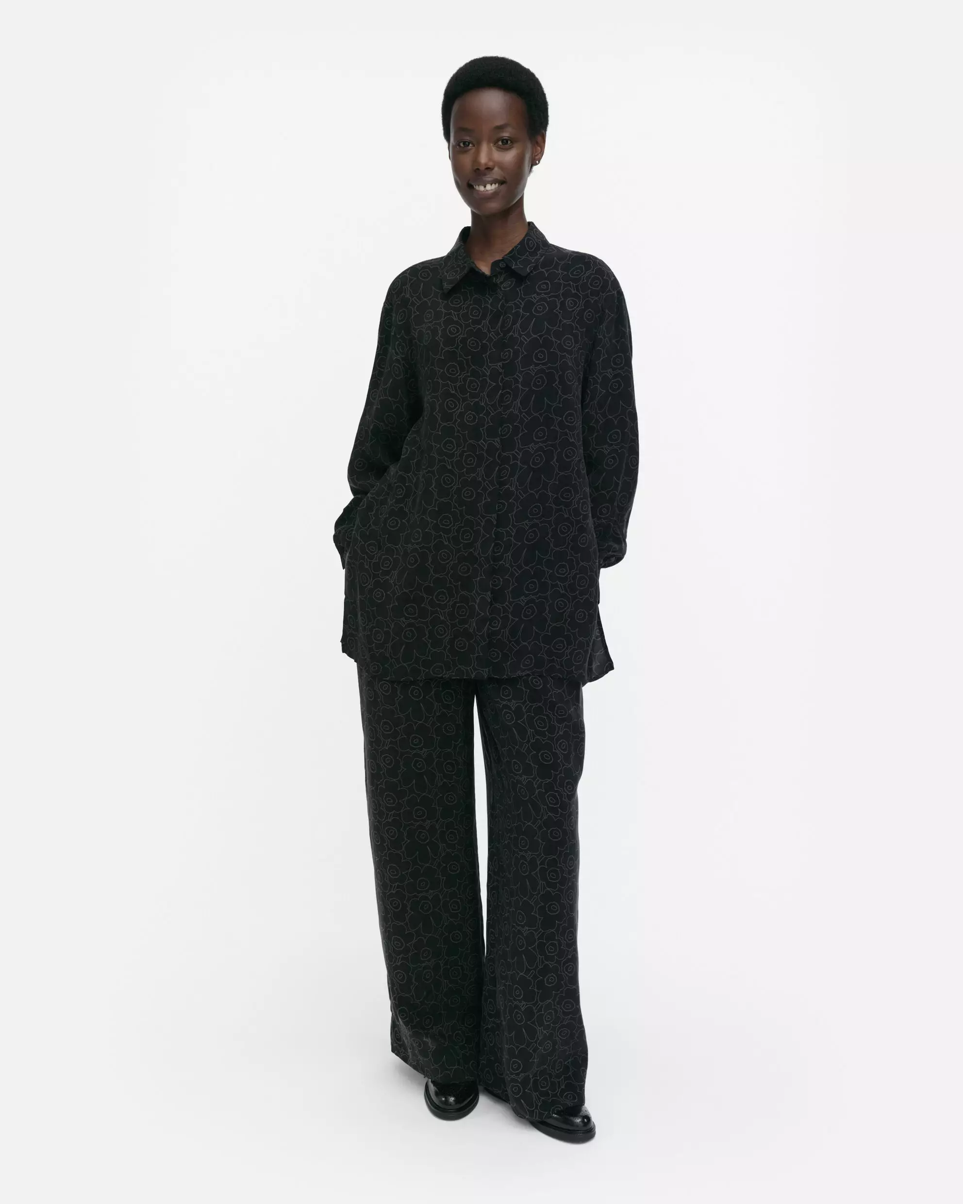 #marimekko #runsas #piirtounikko #paita #kauluspaita #kupro #vastuullinen #ekologinen #musta #tummanharmaa #suomalainendesign #maijaiisoli #romania #väljäistuvuus #leveäsiluetti #arkipaita #designpaita #ympäristöystävällinen #jacquard