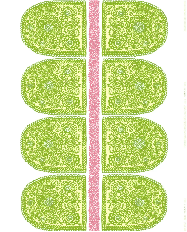Marimekko Satula Paksu Puuvillakangas, valkoinen, vihreä, vaaleanpunainen