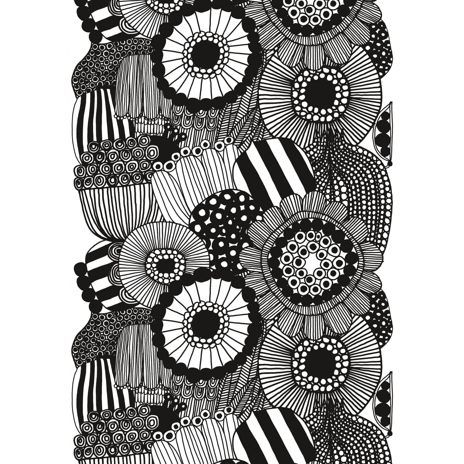 Marimekko Siirtolapuutarha Puuvillakangas, valkoinen, musta