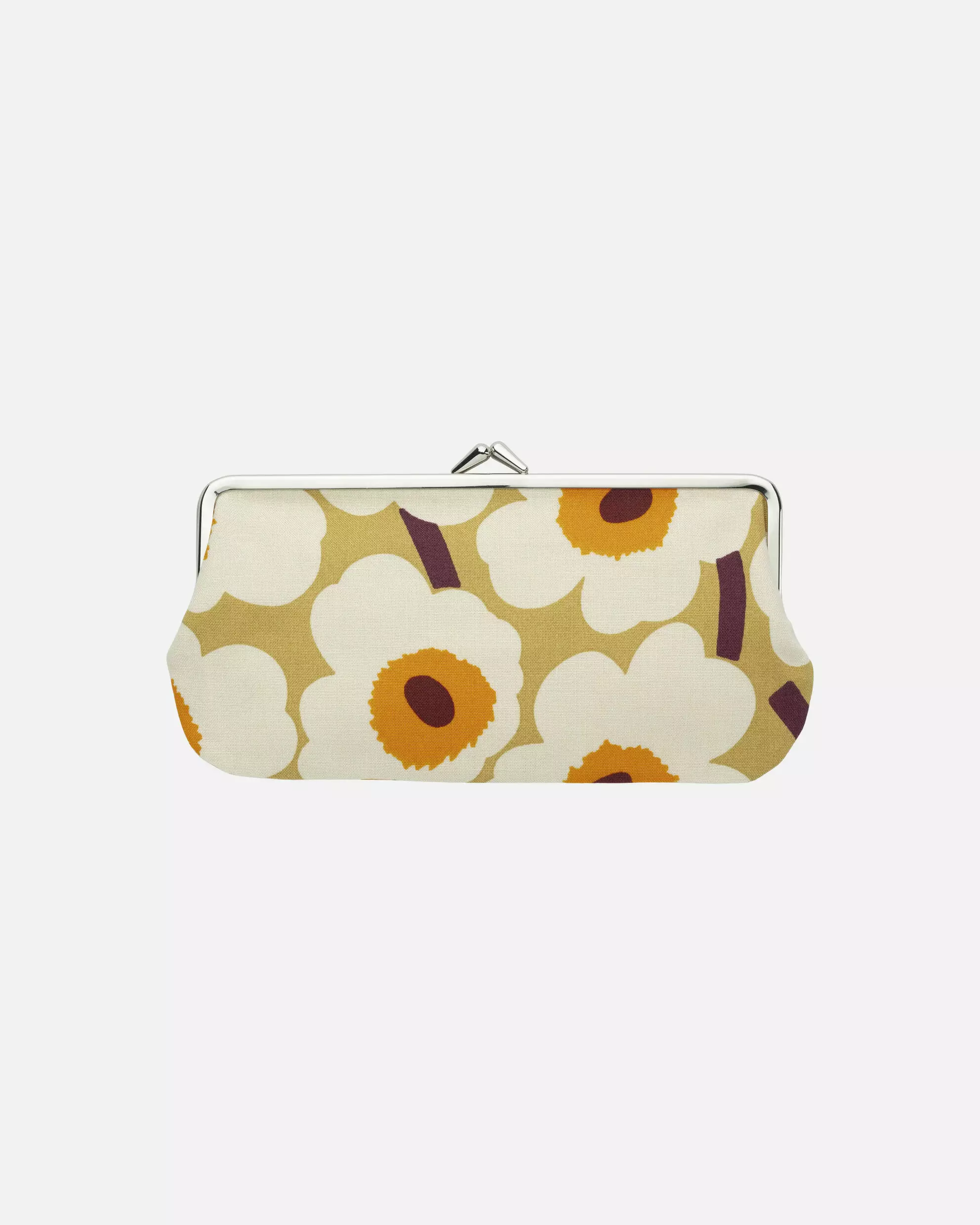 Suojaa silmälasisi tyylikkäästi Marimekon Silmälasikukkarolla! Tämä ainutlaatuinen kukkaro on valmistettu puuvillakankaasta, jonka puuvillasta 50 % on luomua ja 50 % kierrätettyä – tehden siitä paitsi kestävän, myös erittäin vastuullisen valinnan. Lämpimän karamellin, kerman ja lämpimän oranssin sävyt tuovat tähän ikoniseen Mini Unikko -kuosiin aurinkoista energiaa ja kodikasta tunnelmaa. Kukkarossa on metallinen kehys, joka on helppo napsauttaa auki ja kiinni, ja se on painettu Marimekon omassa painossa Helsingissä. Mini Unikko -kuosi, luovuuden ja rohkeuden symboli, on Maija Isolan vuonna 1964 luoma rakastettu klassikko.