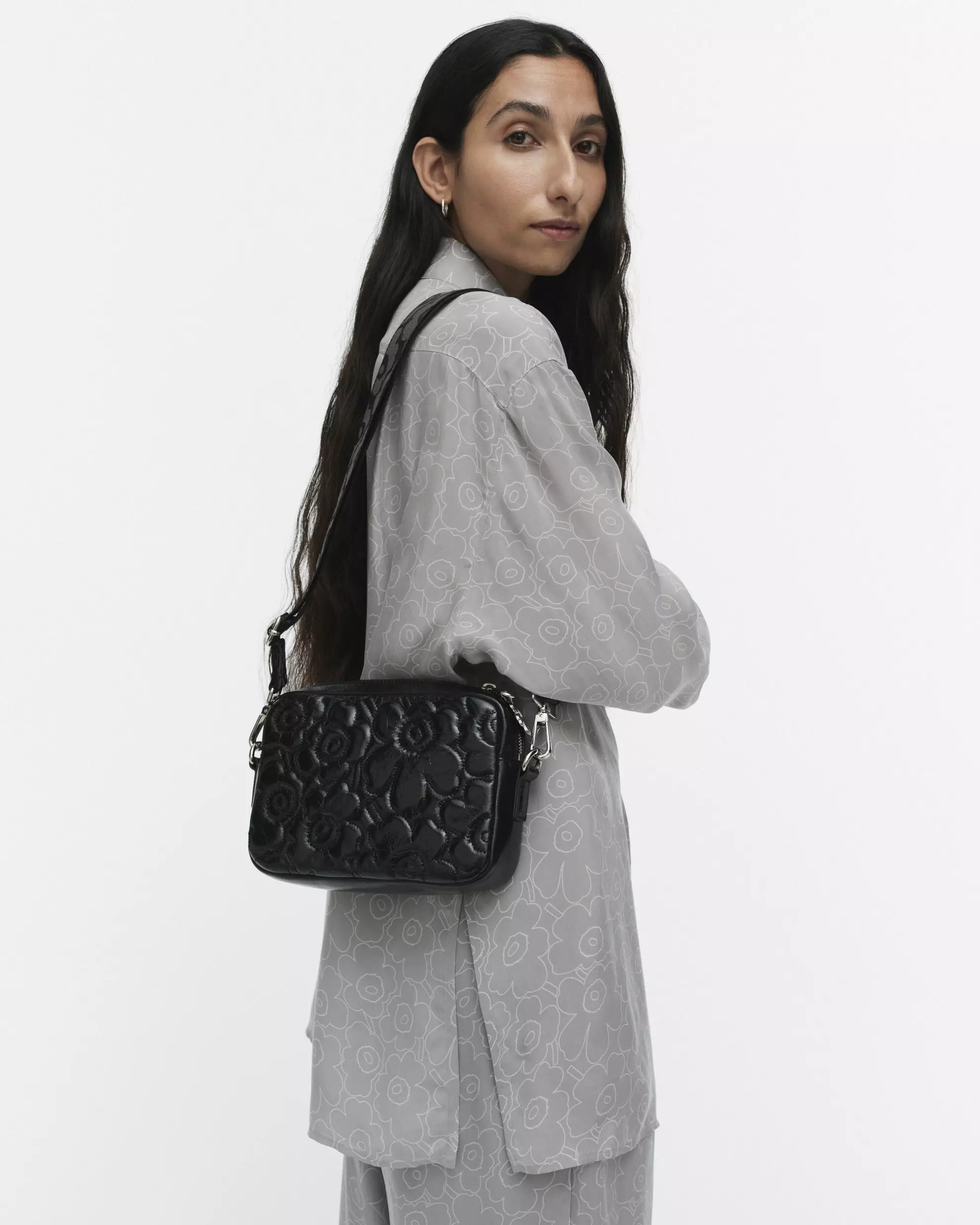 Vastuullinen valinta: Laukku on valmistettu aidosta nahasta ja sen olkahihna kierrätetystä polyamidista. Marimekko on Leather Working Groupin (LWG) jäsen, joka takaa nahan vastuullisen valmistuksen.
