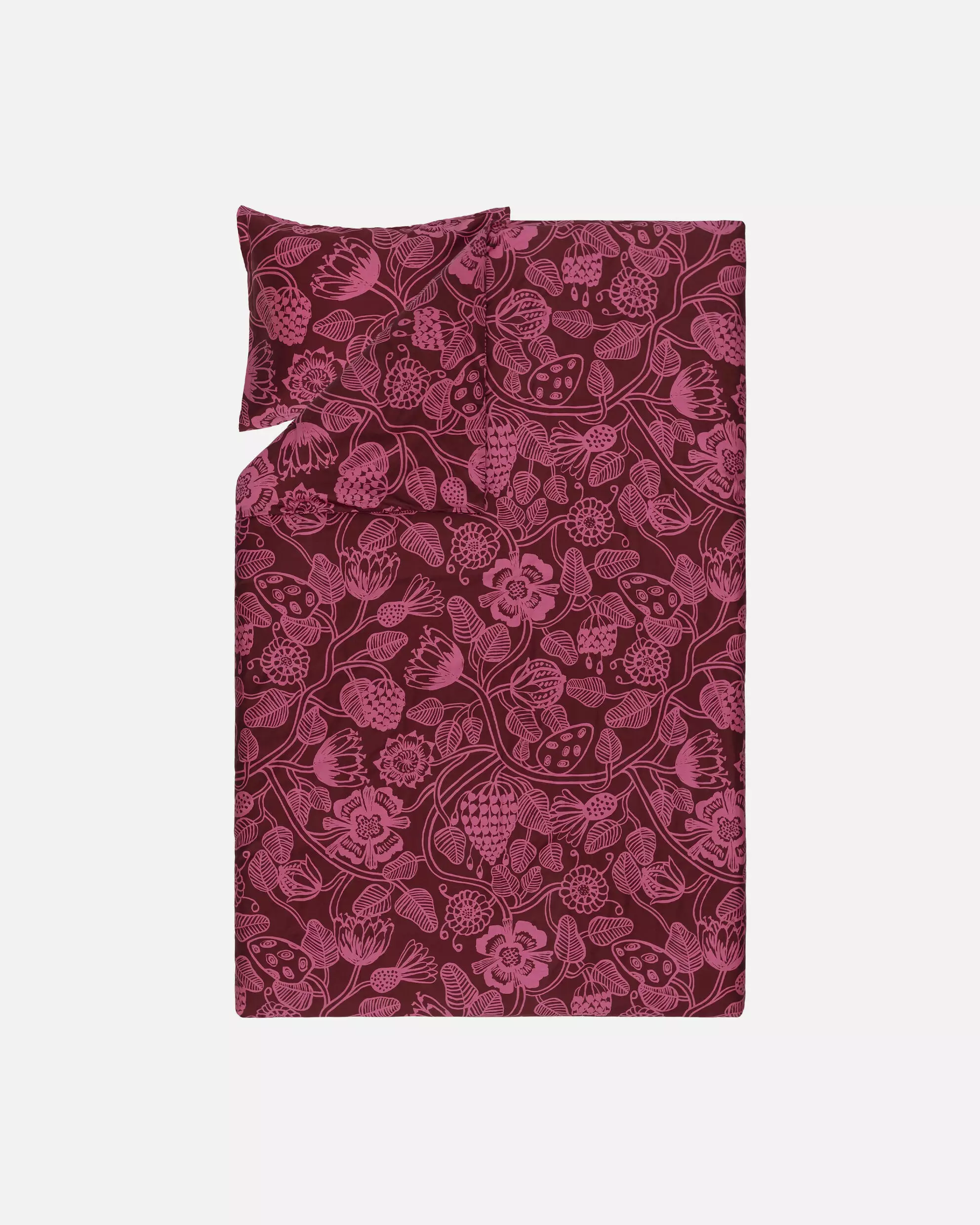 Ajaton design: Erja Hirven Tiara-kuvio on kaunis ja yksityiskohtainen. Kuosin burgundin ja vaaleanpunaisen sävyt luovat hienostuneen ilmeen.