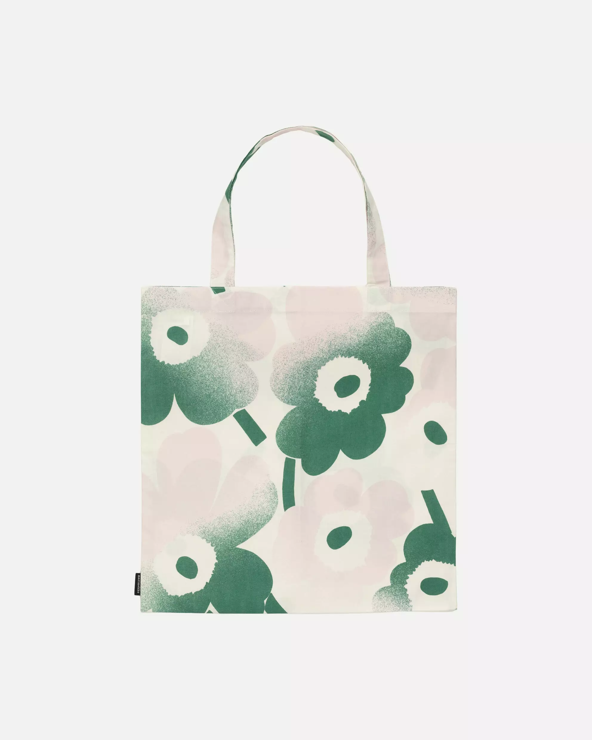 Puuvillasta valmistettu kassi on helppo taitella toisen laukun sisään ja pitää aina mukana. Pieni Unikko Häivähdys -kuosinen kassi on valmistettu puuvillasta, joka on painettu Helsingissä.