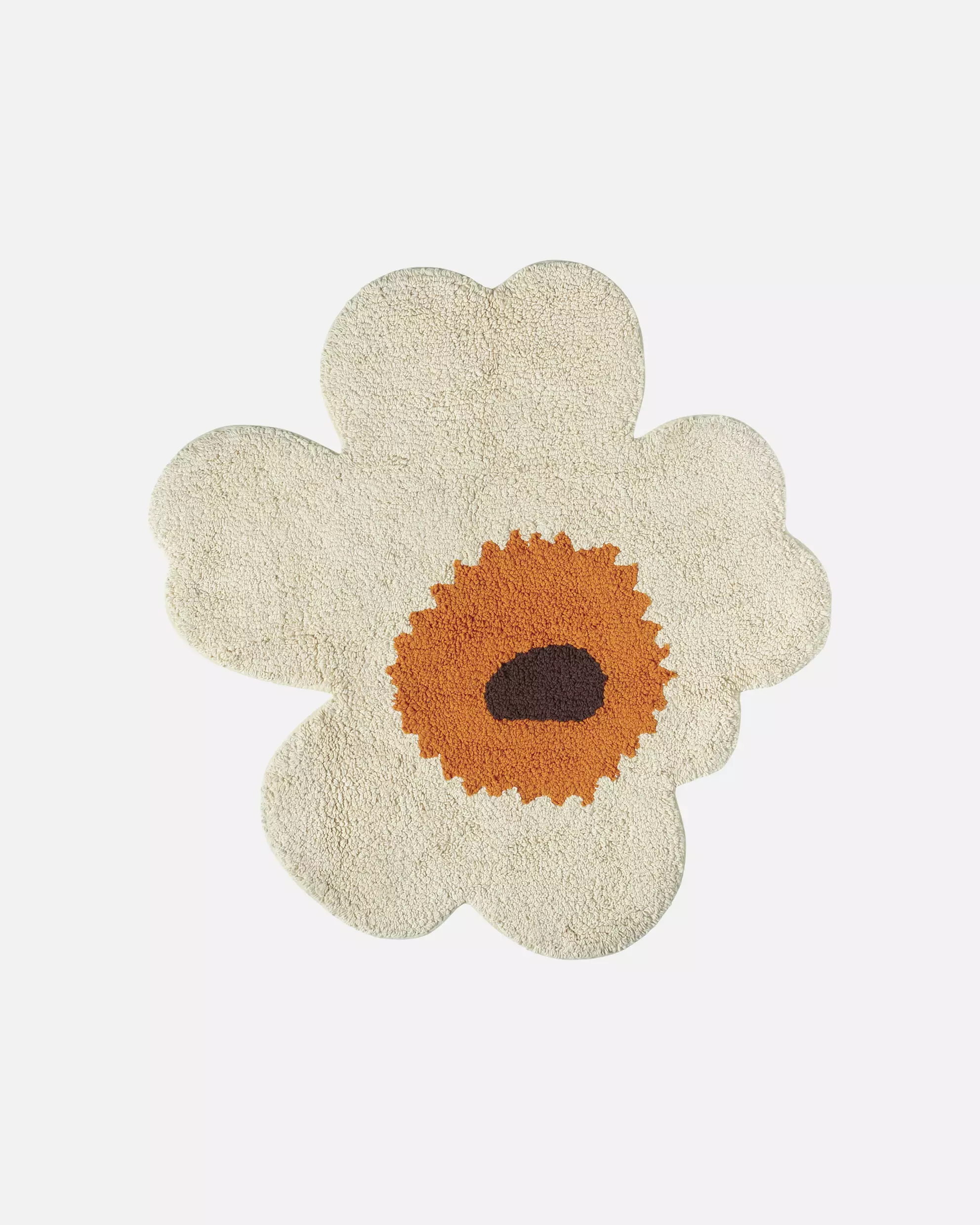 #marimekko #unikko #kylpyhuoneenmatto #kylpymatto #matto #luomupuuvilla #frotee #tuftattu #kukanmuotoinen #kerma #lämminoranssi #suomalainendesign #maijaisola #intia #vastuullinen #ekologinen #kylpyhuoneensisustus #kodintekstiilit #lahjaidea #liukueste