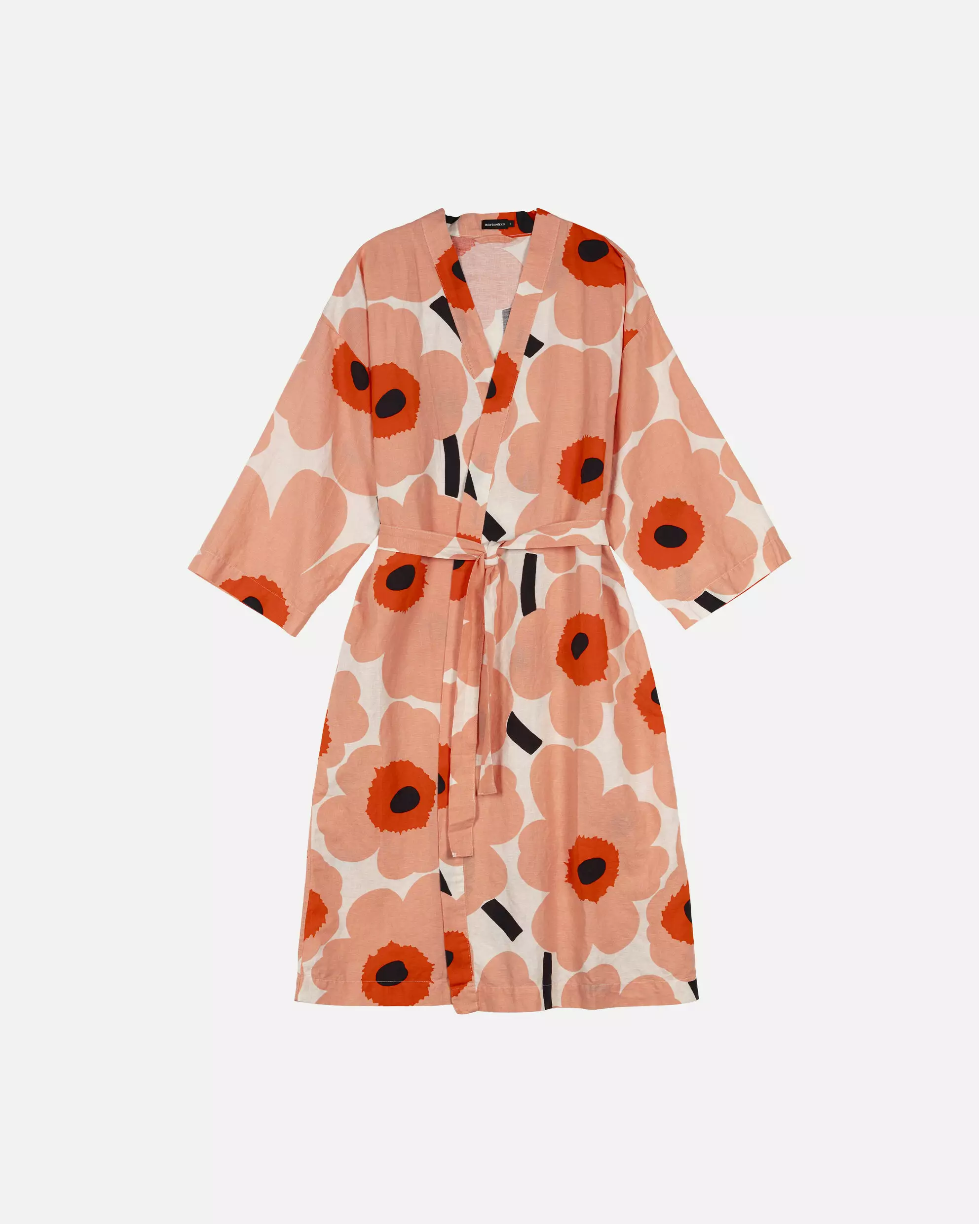 Marimekko Unikko Kylpytakki – Puuvillapellavaa, Luomupuuvillaa, Kimonomalli, Koralli/Hiili