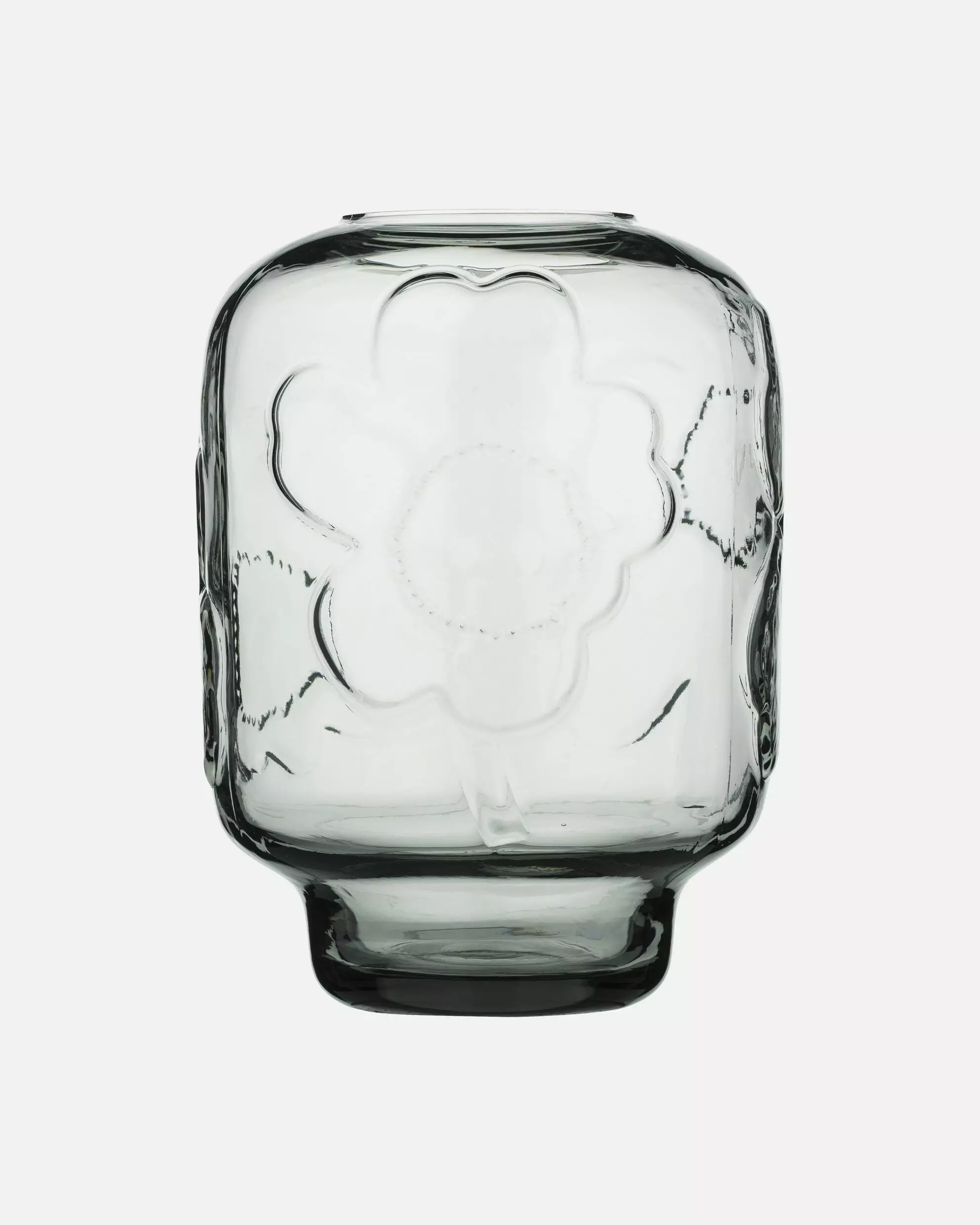 Marimekko Unikko -maljakko on upea yhdistelmä veistoksellista muotoilua ja ikonista kuviotaideperintöä. Nyt tämä klassikko on saatavilla hienostuneessa sumunharmaan sävyssä, joka tuo tilaan rauhallista ja modernia tunnelmaa. Lasin pintaan muotoiltu Unikko-kohokuvio leikkii kauniisti valon ja varjojen kanssa, tehden maljakosta näyttävän sisustuselementin niin kukkien kanssa kuin ilmankin.