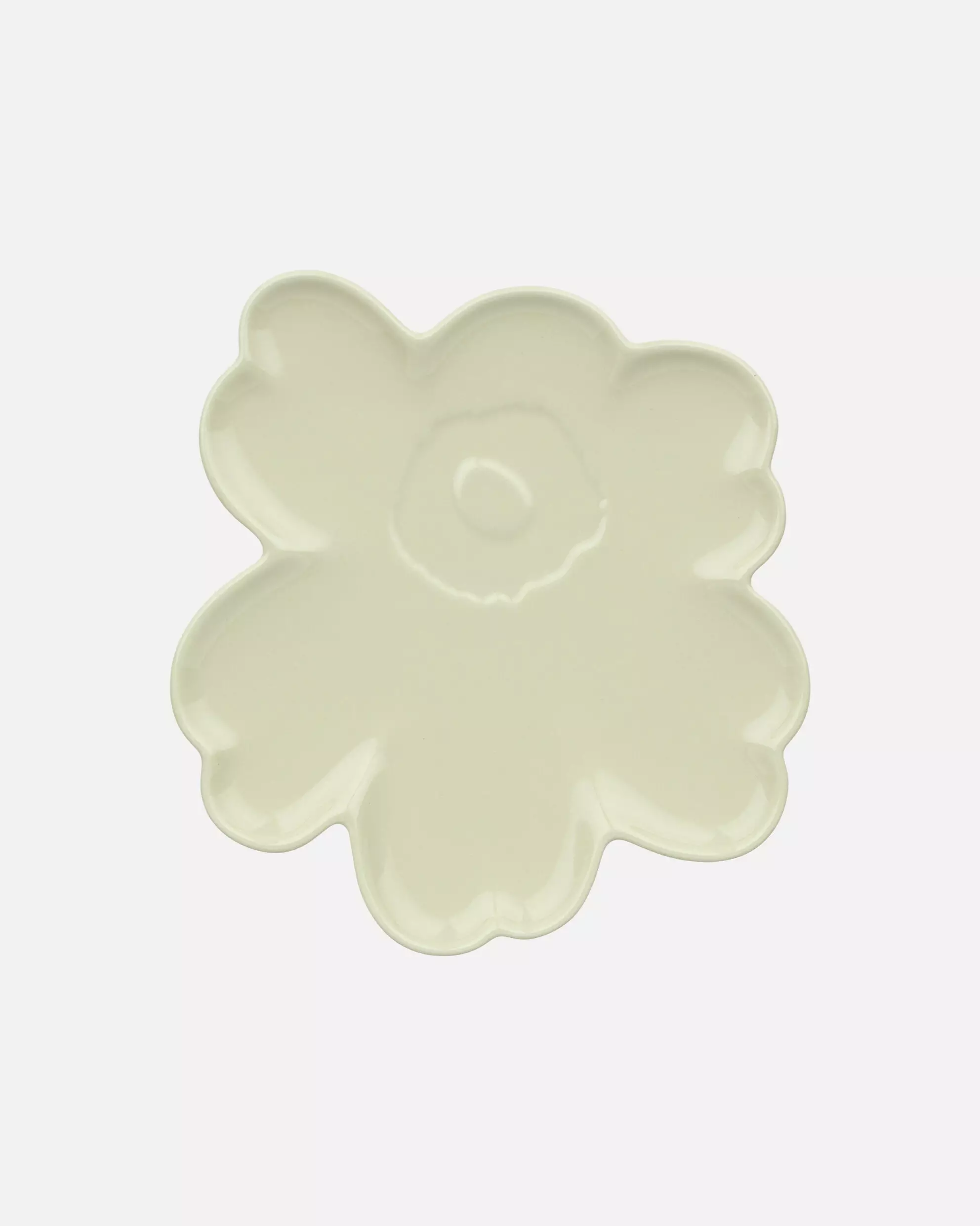 Unikko Shape -lautanen on valmistettu kestävästä valkoisesta kivitavarasta, ja sitä koristaa pehmeän eläväinen, heinänvihreä lasite. Lautasen epäsäännöllinen, kukan terälehtiä noudattava reuna tuo kattaukseen orgaanista pehmeyttä ja modernia suomalaista designidentiteettiä. 20 cm halkaisija tekee siitä erinomaisen valinnan niin aamiaiselle, salaateille kuin näyttäväksi tarjoilualustaksi pikkupurtaville.