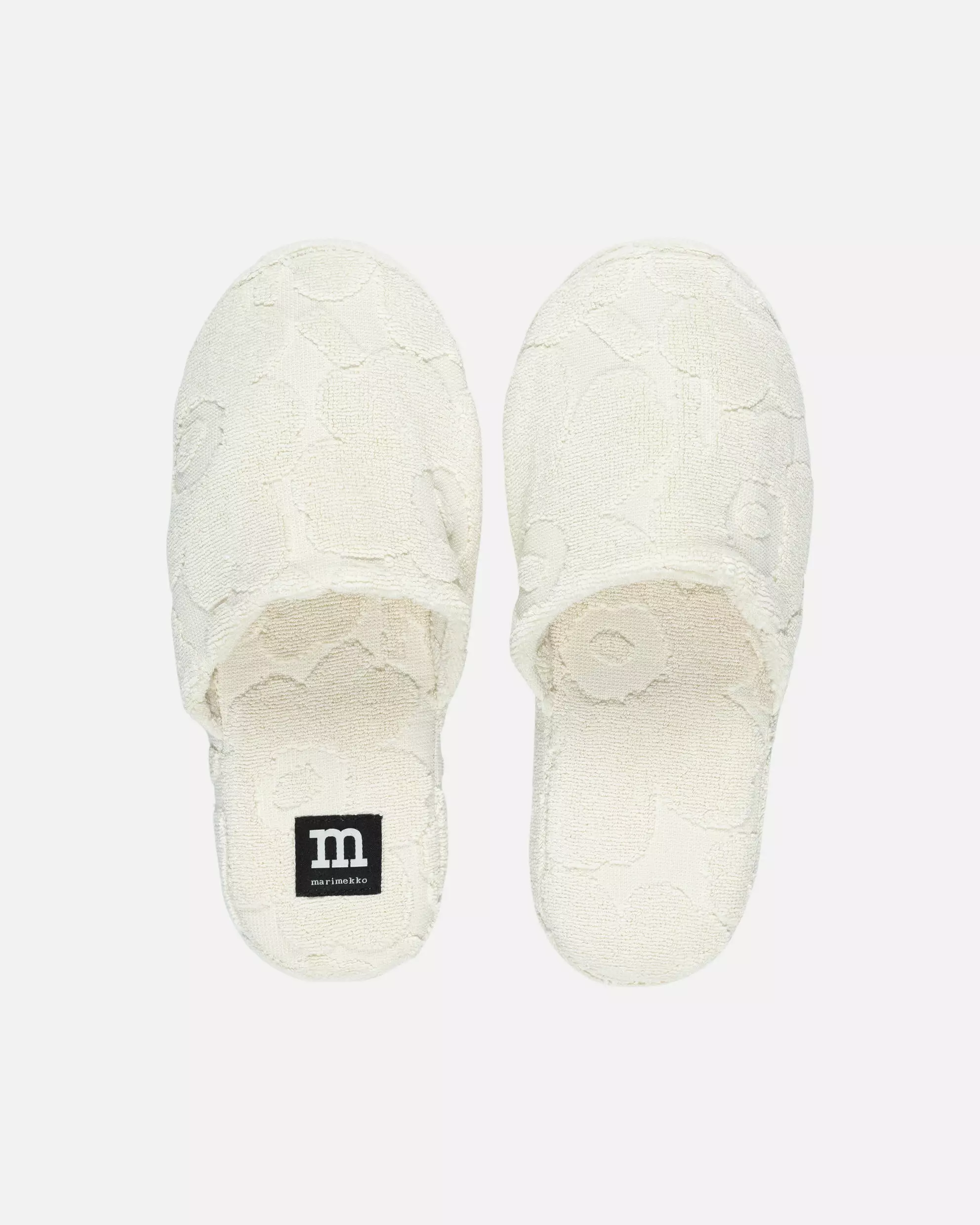 Nämä mukavat sisätossut sujahtavat täydellisesti jalkaan kylvyn tai saunan jälkeen. Luomupuuvillafroteesta valmistetuissa sisätossuissa on Mini Unikko -kuosi. Tossuissa on kumipohjat ja niitä on saatavilla kolmea eri kokoa.