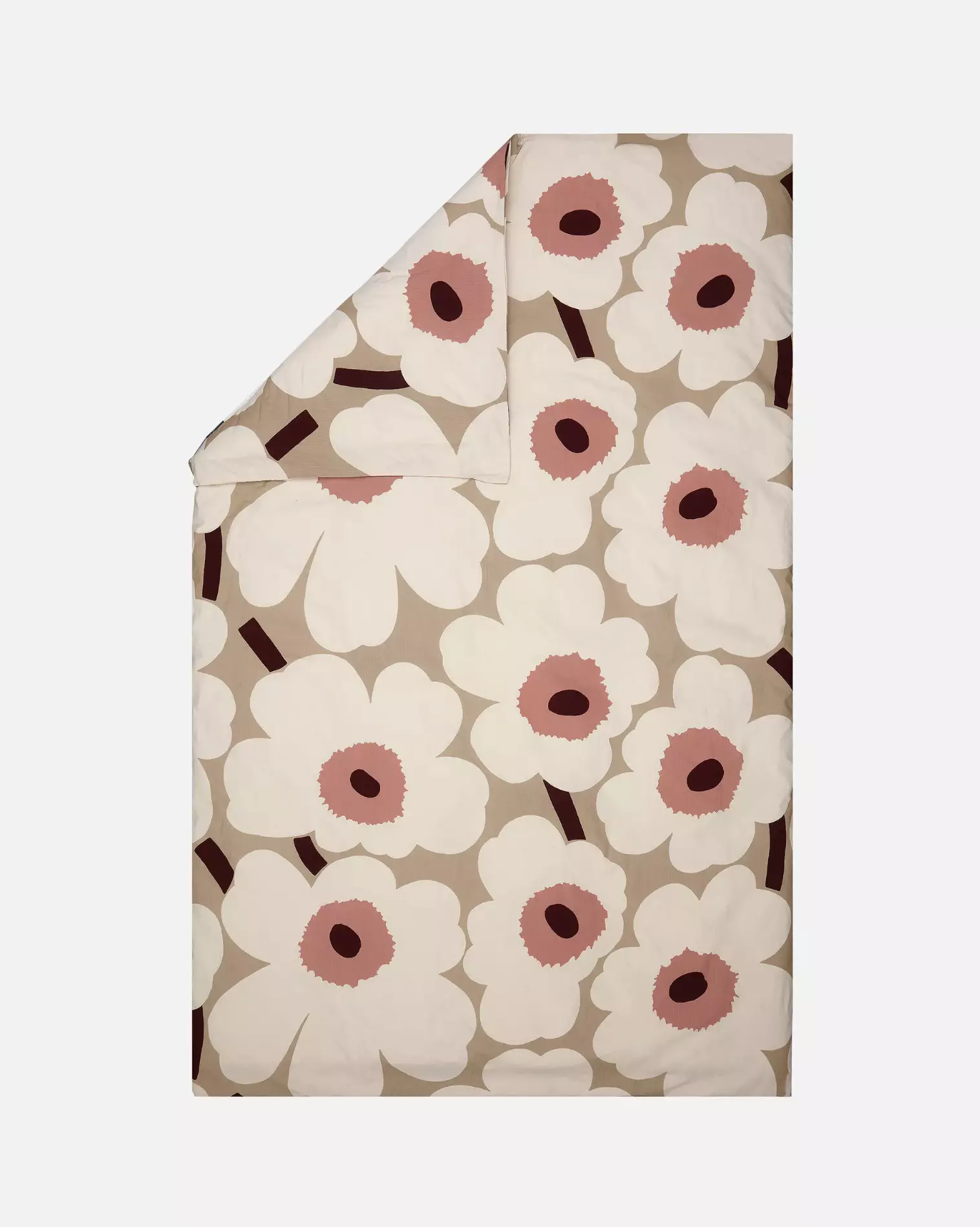 Unikko-kuosinen tuplapussilakana on valmistettu puuvillakrepistä, jonka lankaluku on 177 TC. Lakanan yläpäässä on lakanoidenvaihtoa helpottavat kulma-aukot.