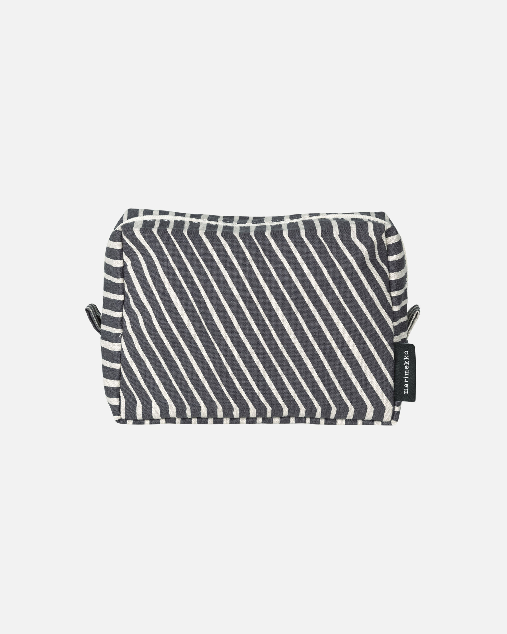 Tilava Vilja-kosmetiikkalaukku on valmistettu valkaisemattomasta puuvillapellavasta ja siinä on Kalasääski-kuosi, joka on painettu Helsingissä. Laukussa on vetoketjusuljenta ja sivussa pieni kantokahva. Sisäpuolella on kierrätetystä polyesterista valmistettu vuori sekä kaksi isoa taskua ja paikat meikkisiveltimille.