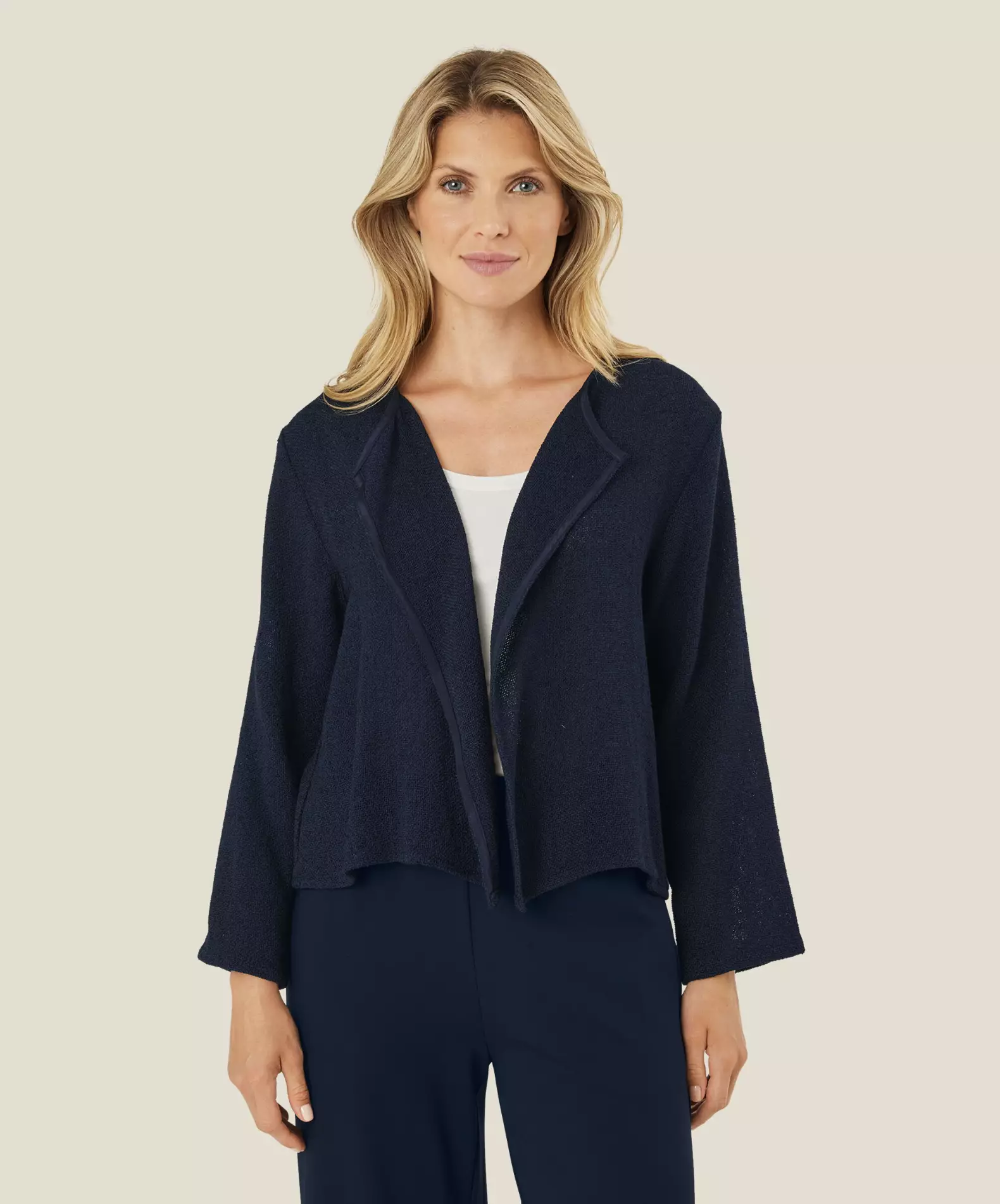 Tämä jakku on ihanteellinen vaihtoehto perinteiselle bleiserille tai neuletakille. Se toimii rentona mutta huoliteltuna kerroksena mekon, tunikan tai yksinkertaisen puseron ja housujen päällä. Navy Blazer -sävy sopii erinomaisesti yhteen niin valkoisen, beigen kuin farkunsinisenkin kanssa.