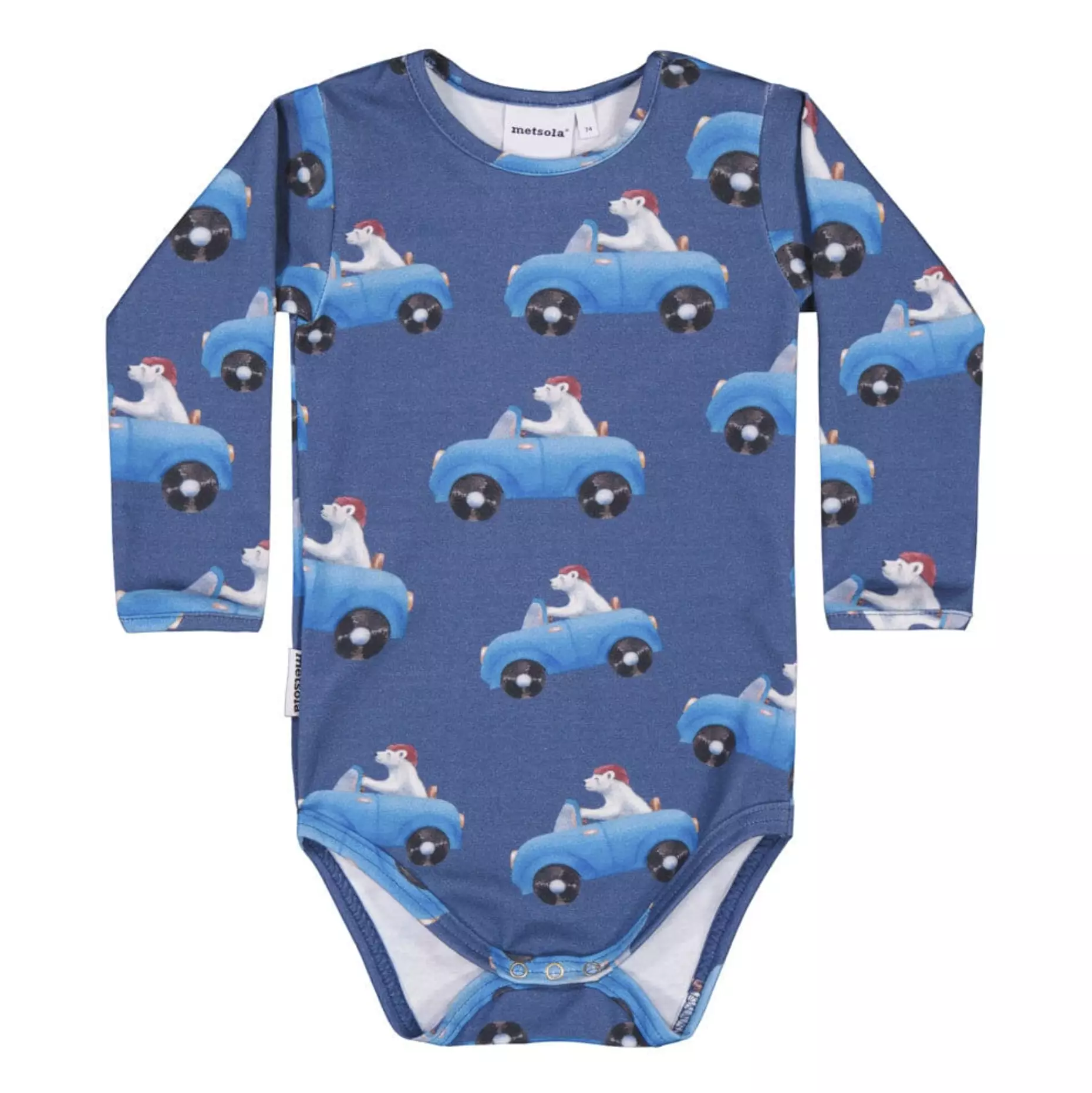 Tämä Metsolan Arctic Cruiser -body on täydellinen lisä vauvan vaatekaappiin. Henna Adelin suunnittelema kuosi, jossa jääkarhu ajaa autolla, on hurmaava esimerkki Metsolan Urban Story -malliston maailmasta, missä luonto ja kaupunki yhdistyvät hauskalla ja yllättävällä tavalla. Tummansininen Nighty-sävy tekee kuosista rauhallisen mutta täynnä ilmettä.