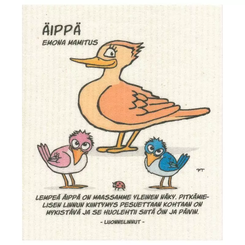 Olipa hän Äiti, Mami, Mutsi tai Mummo, tämä Petri Törmäsen Luonnelinnut-sarjan ykköshautoja, Äippä-lintu, on täydellinen valinta kodin sydämeen. Äippä on lempeä ja ihana emo, joka piristää arkea ja muistuttaa huolenpidosta. Anna tämä tiskirätti lahjaksi ja lupaa samalla hoitaa seuraavat kahvitahrat äidin puolesta – se on pieni teko, jolla on suuri merkitys.