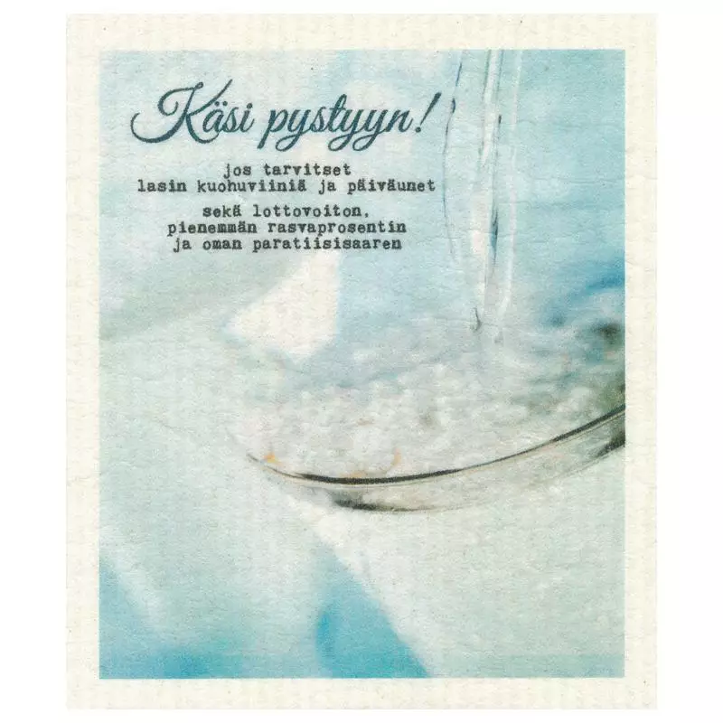 #morejoy #tiskirätti #käsipystyyn #annamariewest #selluloosapuuvilla #biohajoava #kestävä #ympäristöystävällinen #keittiöliina #inspiraatio #unelmat #lahjaidea #sitaatti #hauska #kotitalous #siivous #kuohuviini #pienetilot