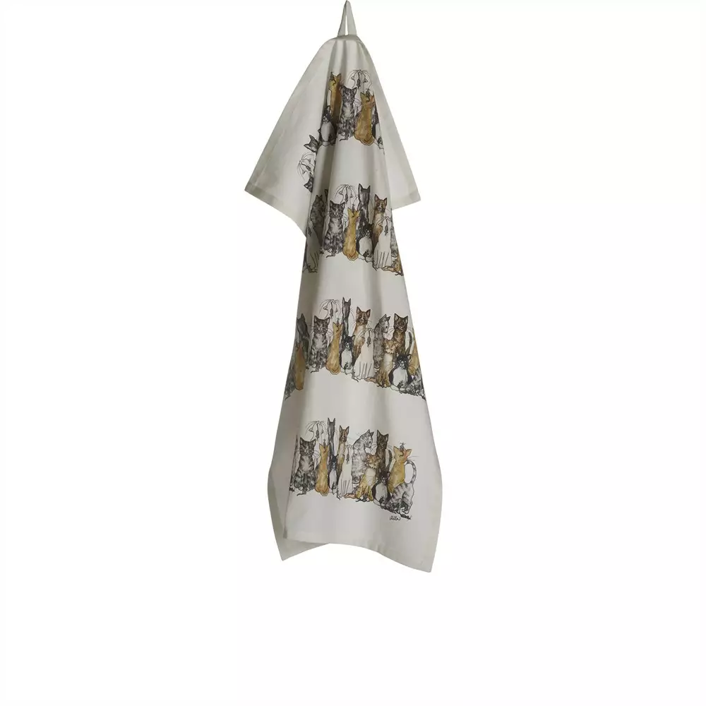 Nääsgränsgårdenin kissapyyhe yhdistää käytännöllisyyden, vastuullisuuden ja sydämellisen skandinaavisen designin. Pyyhe on valmistettu kierrätetystä puuvillasta, mikä tekee siitä ekologisen vaihtoehdon perinteiselle tekstiilille laadusta tinkimättä. Camilla Ståhlin taidokas kuvitus herättää eri kissapersoonat eloon, tehden pyyhkeestä paitsi tehokkaan apulaisen astioiden kuivaukseen, myös kauniin sisustuselementin, joka tuo persoonallisuutta keittiöösi.