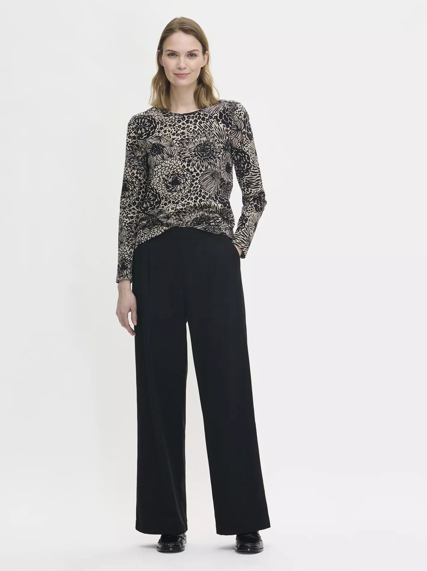 Tuo asuusi kukkaloistoa tällä Nanson kukkakuviollisella Huvi-trikoopuserolla. Sen beige ja musta väritys on klassinen ja tyylikäs valinta, joka sopii moneen tilaisuuteen. Puserossa on suoralinjainen malli, tereellä viimeistelty pyöreä pääntie ja täyspitkät hihat. Se on valmistettu pehmeästä ja miellyttävästä puuvilla-elastaanista, mikä tekee siitä arjen luottovaatteen.