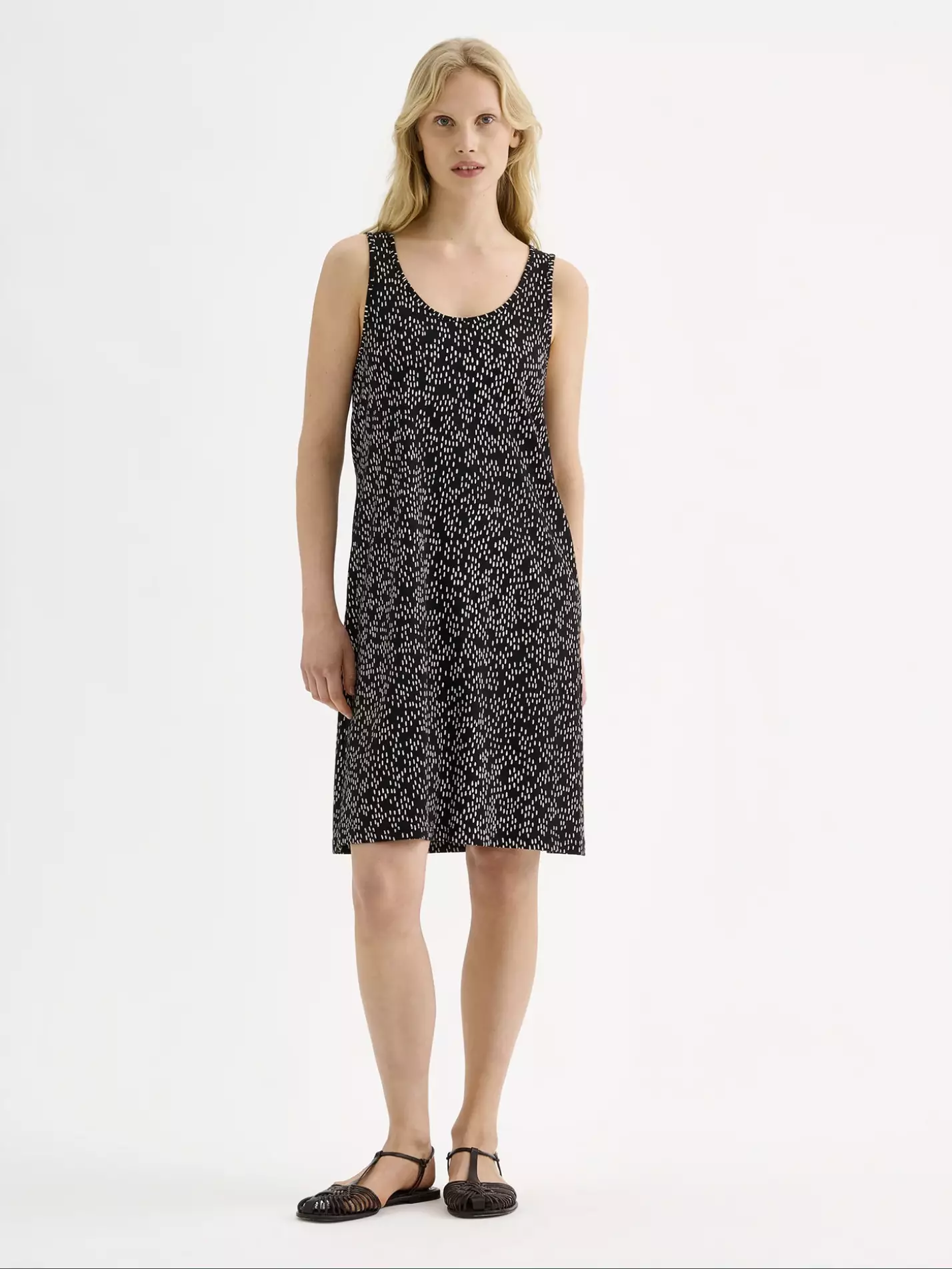 Nanso Pilkkumeri Hihaton Mekko | Musta/Valkoinen | Puuvilla-Modaali
