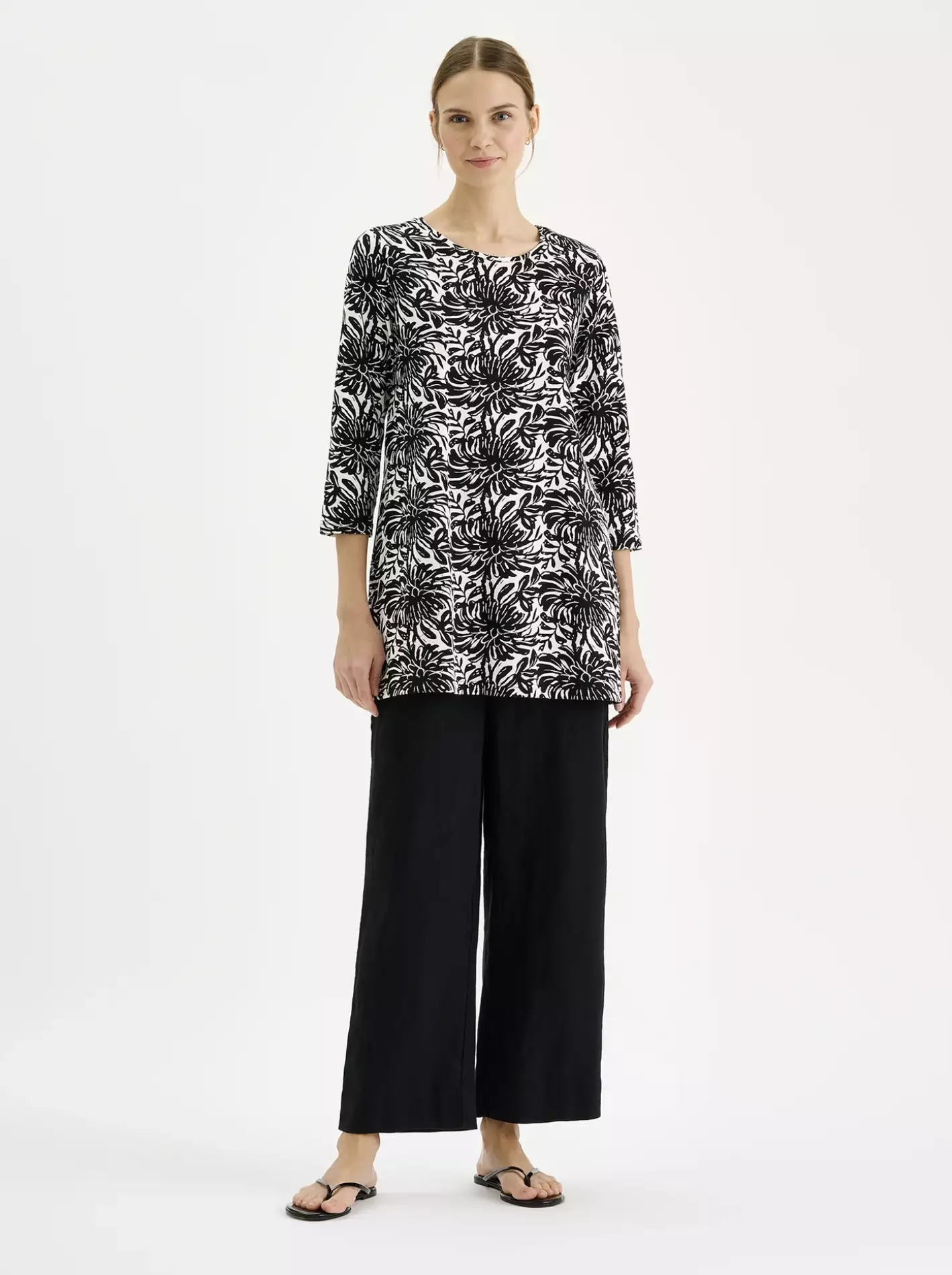 Löydä uusi suosikkivaatteesi Nanso Safiiri -trikootunikasta. Tässä upeassa tunikassa yhdistyvät näyttävä mustavalkoinen graafisuus ja vertaansa vailla oleva käyttömukavuus. Imarteleva A-linjainen leikkaus antaa tilaa liikkua, ja huolellisesti mietityt yksityiskohdat, kuten käytännölliset sivutaskut ja tereellä viimeistelty pyöreä pääntie, tekevät tästä tunikasta arjen todellisen luottovaatteen.