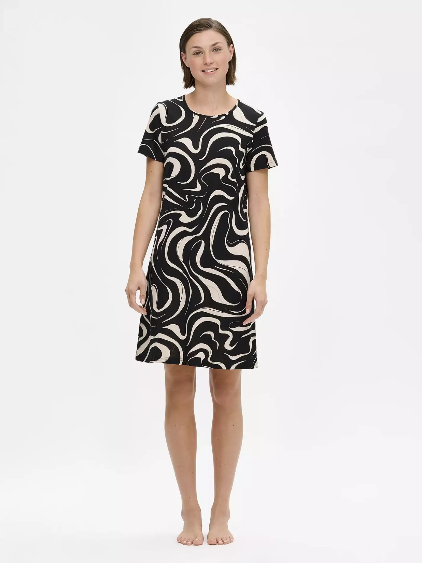 Koti-asuna: Tyylikkään kuosinsa ansiosta Vesi-yöpaita toimii loistavasti myös rentona oloasuna hitailla aamukahveilla.