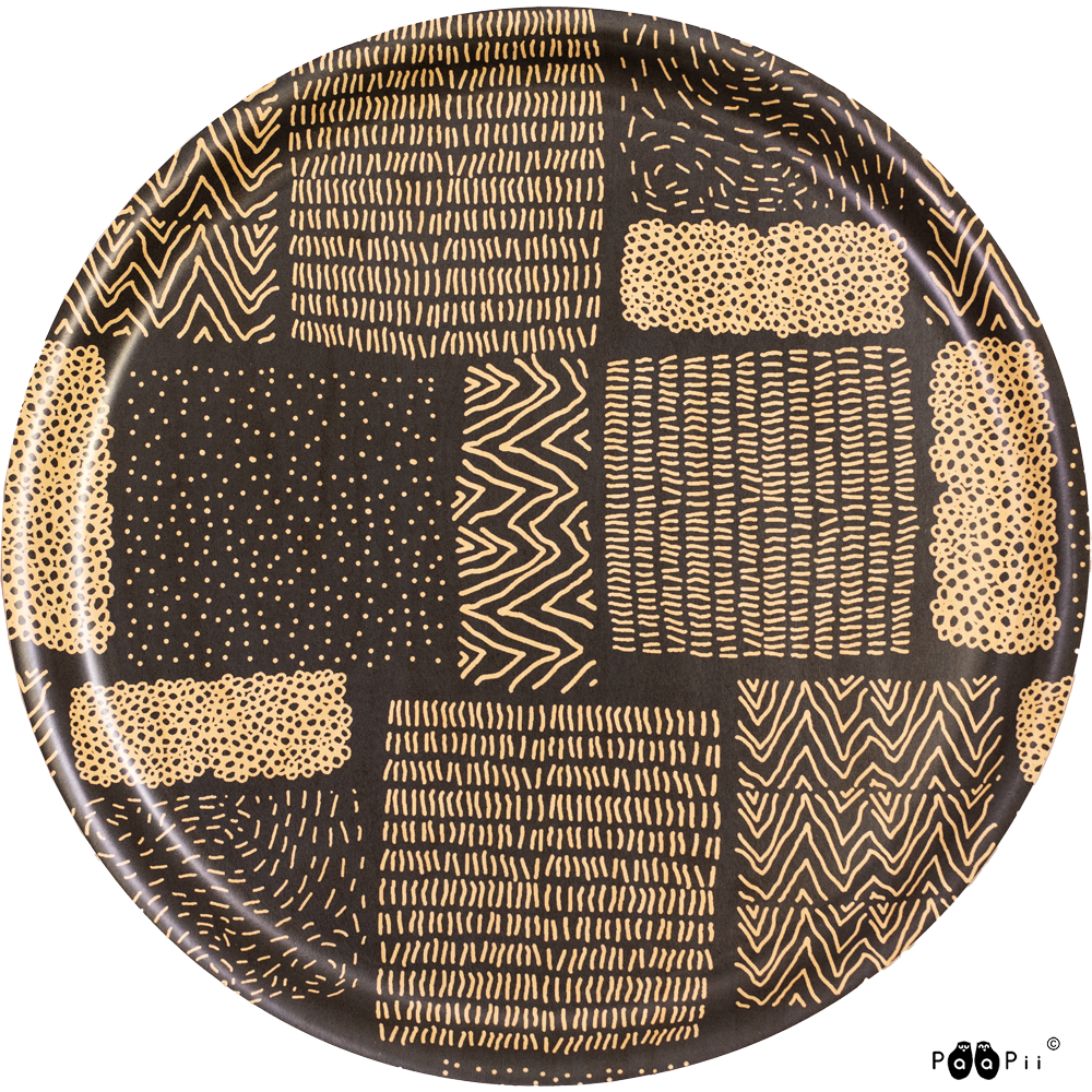 PaaPiin kotimainen tarjotin Sarka-kuosilla. Kauniskuosinen, puinen tarjotin on valmistettu kotimaisesta koivuviilusta Suomessa. Tarjottimella on ympäristöystävällinen melamiinipinta, joka kestää kuumuutta ja hankausta. PaaPii-tarjotin on näyttävä yksityiskohta sisustuksessa sekä erinomainen lahjaidea!