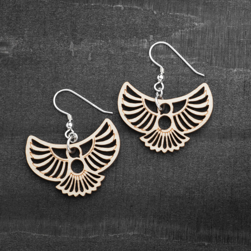 Pienet puiset Kuukkeli korvakorut ovat ihanan kevyet kantaa. Ne on valmistettu kotimaisesta koivuvanerista. Vanerin tuotannossa on käytetty ainoastaan kotimaista raaka-ainetta. Puun alkuperälle ja toimitusketjulle on myönnetty PEFC-sertifikaatti, joka kertoo mm. puun hakkuuseen liittyvistä vastuullisuuskysymyksistä.