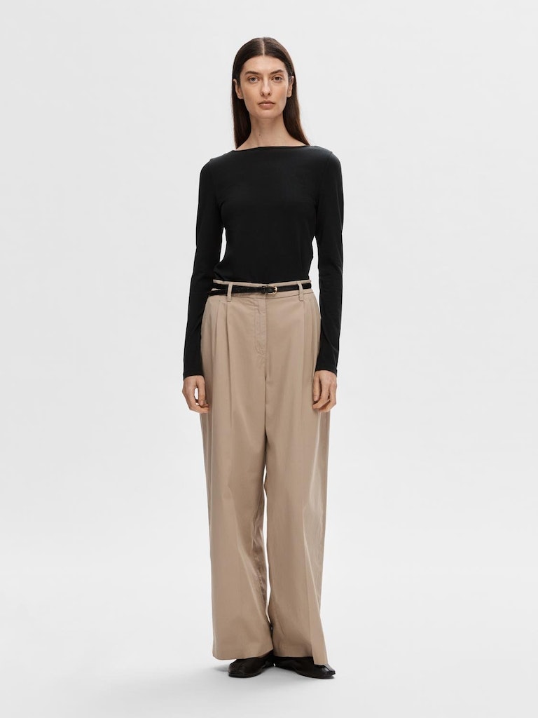 Tämä pitkähihainen T-paita saattaa näyttää perustason, mutta katso hieman tarkemmin, ja huomaat, että se on käännettävä. Käytä sitä yhtenä päivänä tyylikkään venekaulan kanssa ja vaihda sitä seuraavana päivänä. tämä maksimoi vaatekaappisi viemättä ylimääräistä tilaa! Tyyliä millä tahansa farkkuhameista minihameisiin. - Veneen kaula - Käännettävä muotoilu - Pitkät hihat - Tiukka
