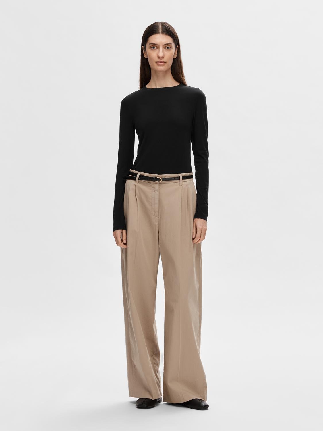 Tämä perusmallinen naisten T-paita kuuluu jokaiseen vaatekaappiin. Kaunis pyöreä pääntie sekä pitkät hihat.