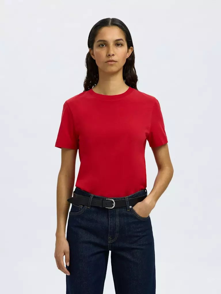 #selectedfemme #myessential #tpaita #luomupuuvilla #punainen #equestrianred #naistenmuoti #arkikäyttö #klassikko #peruspaita #mukava #ekologinen #vastuullinen #lyhythihainen #regularfit #bangladesh