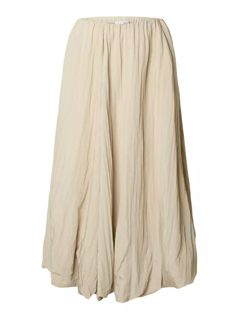 #selectedfemme #rolan #midihame #korkeavyötäröinen #bubblehem #viskoosi #ecovero #nailon #vastuullinenmuoti #luonnonvalkoinen #islandfossil #tyylikäs #mukava #arki #juhla #hame