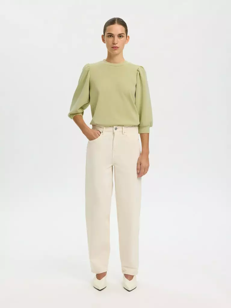 SELECTED FEMME Tenny – Vaaleanvihreä Puhvihihainen Svetari Pehmeästä Modalista