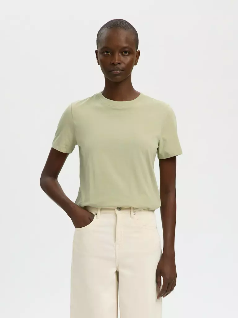 Päivitä peruspukeutumisesi sesongin kauneimmalla sävyllä. SELECTED My Essential -T-paita värissä Lint on hienostunut ja pehmeä vaaleanvihreä, joka tuo mieleen kevään ensimmäiset silmut ja luonnon rauhoittavan voiman. Valmistettu 100-prosenttisesta luomupuuvillasta, tämä paita tarjoaa hengittävää pehmeyttä ja kestävää laatua, joka tuntuu iholla ylellisen miellyttävältä päivästä toiseen.