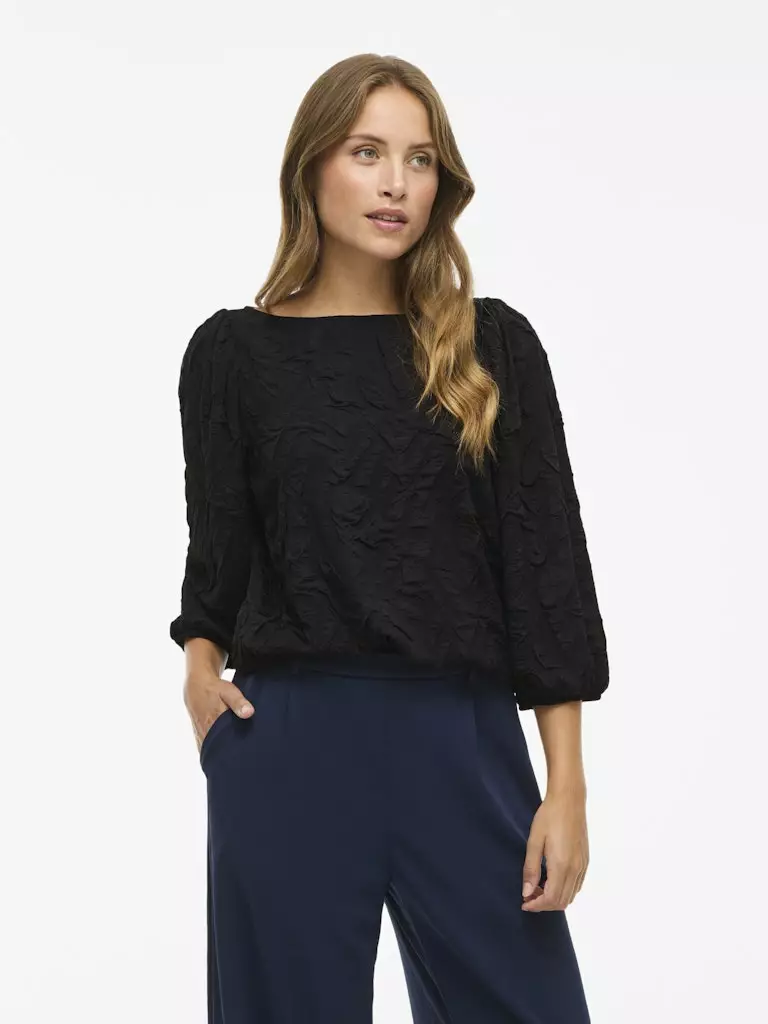 Tämä VILA Devera 3/4-hihainen pusero on täydellinen valinta naiselle, joka arvostaa sekä mukavuutta että tyyliä! Tämä elegantti paita on valmistettu pehmeästä ja joustavasta kierrätetyn polyesterin ja elastaanin sekoituksesta (97 % kierrätettyä polyesteriä, 3 % elastaania). Puserossa on klassinen venekaula-aukko sekä tyylikkäät, 3/4-pituiset puhvihihat, jotka tuovat siihen naisellista ilmettä. Regular Fit -mitoitus takaa mukavan ja imartelevan istuvuuden. Klassinen musta "black beauty" -väri tekee puserosta monikäyttöisen vaatekaapin kulmakiven.