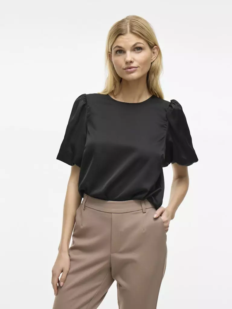 Tämän topin klassinen musta väri ja puhvihihat tekevät siitä erinomaisen pohjan monenlaisiin asukokonaisuuksiin.