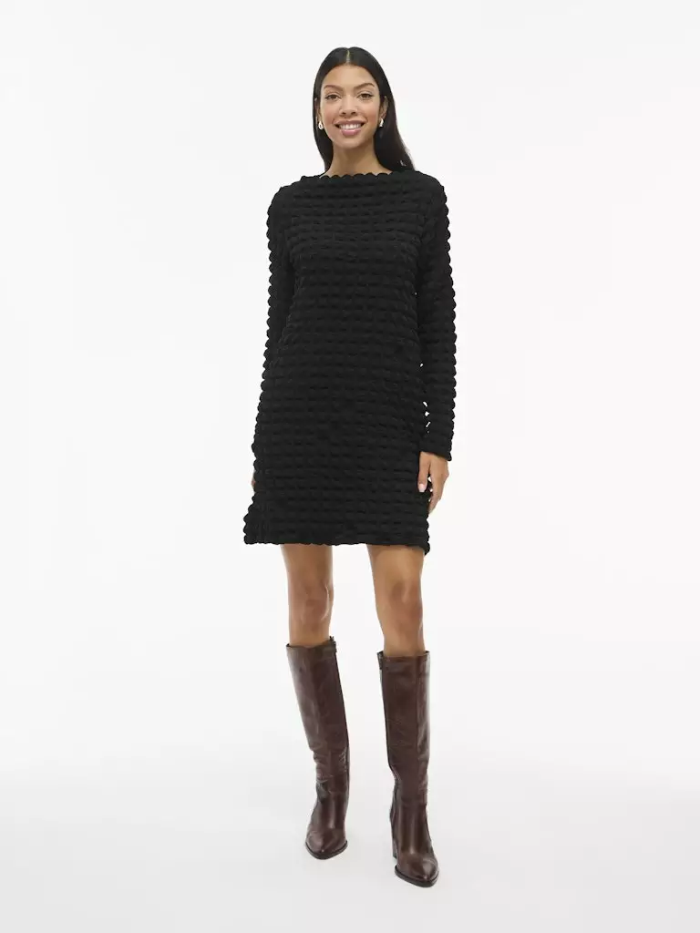 Tuote: VILA Forcea Venepäänteinen Lyhyt Mekko Avainsanat: VILA Forcea mekko, lyhyt mekko venepääntie, pitkähihainen mekko musta, kierrätyspolyesteri mekko, Regular Fit mekko.