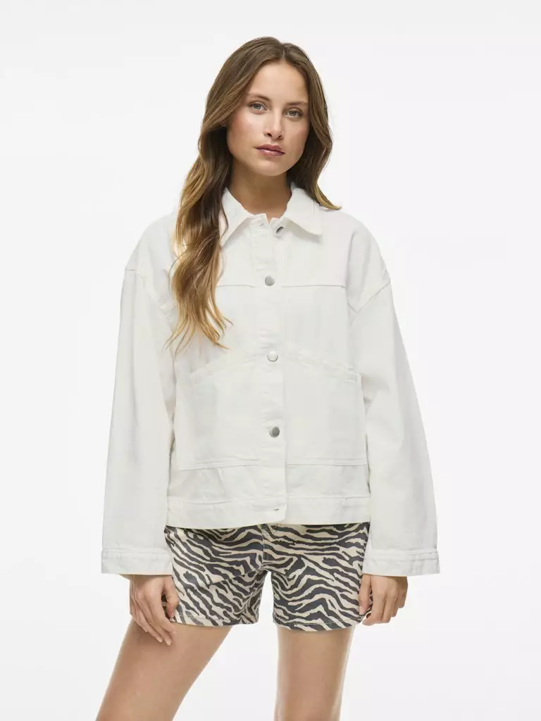 Tämä VILA Pal -farkkutakki on ajaton klassikko, joka saa rennon ilmeen pudotetuista olkapäistä. Perinteinen napitus edessä ja käytännölliset etutaskut tekevät takista monikäyttöisen. Valkoinen väri (Snow White) on raikas ja helppo yhdistää mihin tahansa asuun.
