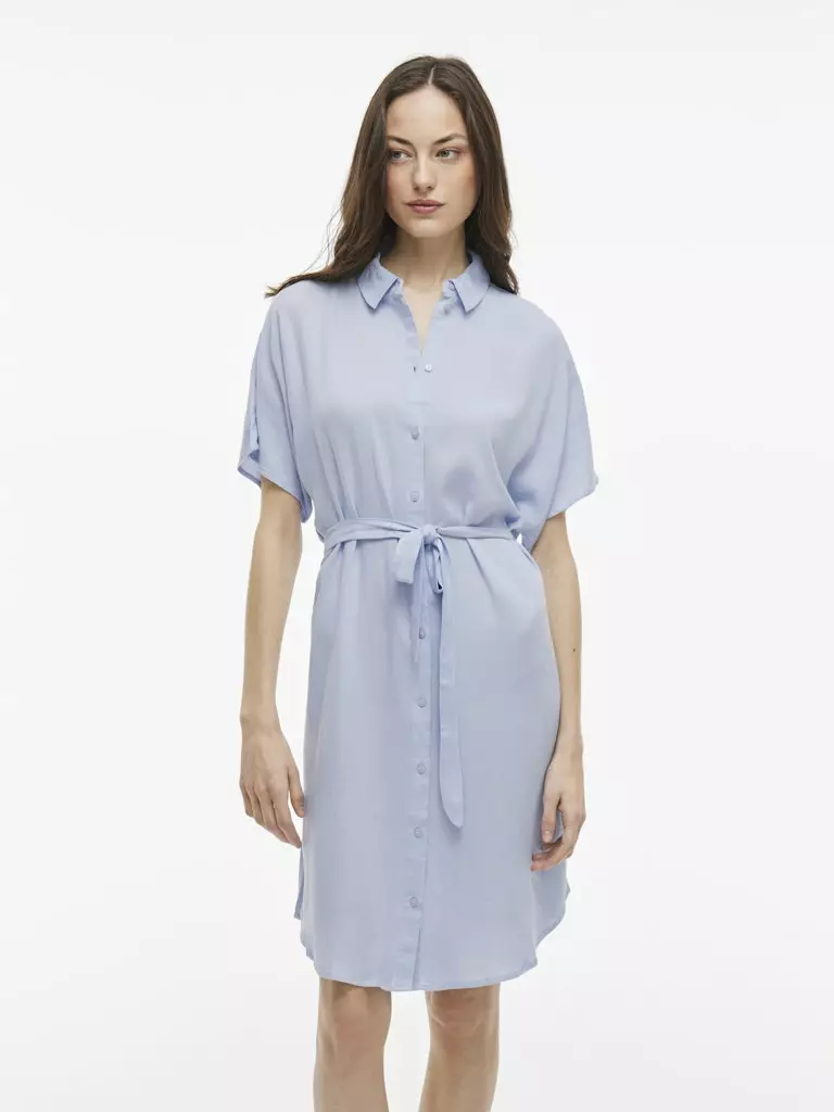 Tämä VILA Pricil -paitamekko on täydellinen valinta rentoon ja tyylikkääseen kesäpukeutumiseen. Lyhyt malli, irrotettava vyö ja napitus edessä tekevät mekosta monipuolisen ja mukavan päällä.