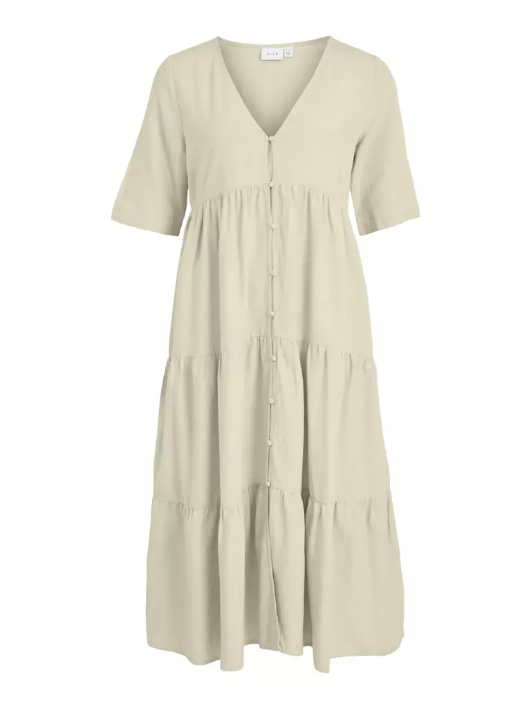 VILA Prisilla -lyhythihainen midimekko: Kesäistä naisellisuutta pellavasekoitteesta