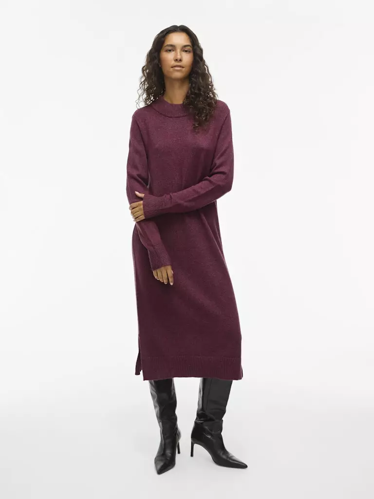 Tuote: VILA Ril Pitkähihainen Pyöreäpäänteinen Midimekko Avainsanat: VILA Ril neulemekko, midimekko pyöreä pääntie, pitkähihainen neulemekko, loose fit mekko, viininpunainen neulemekko, halkiot helmassa.