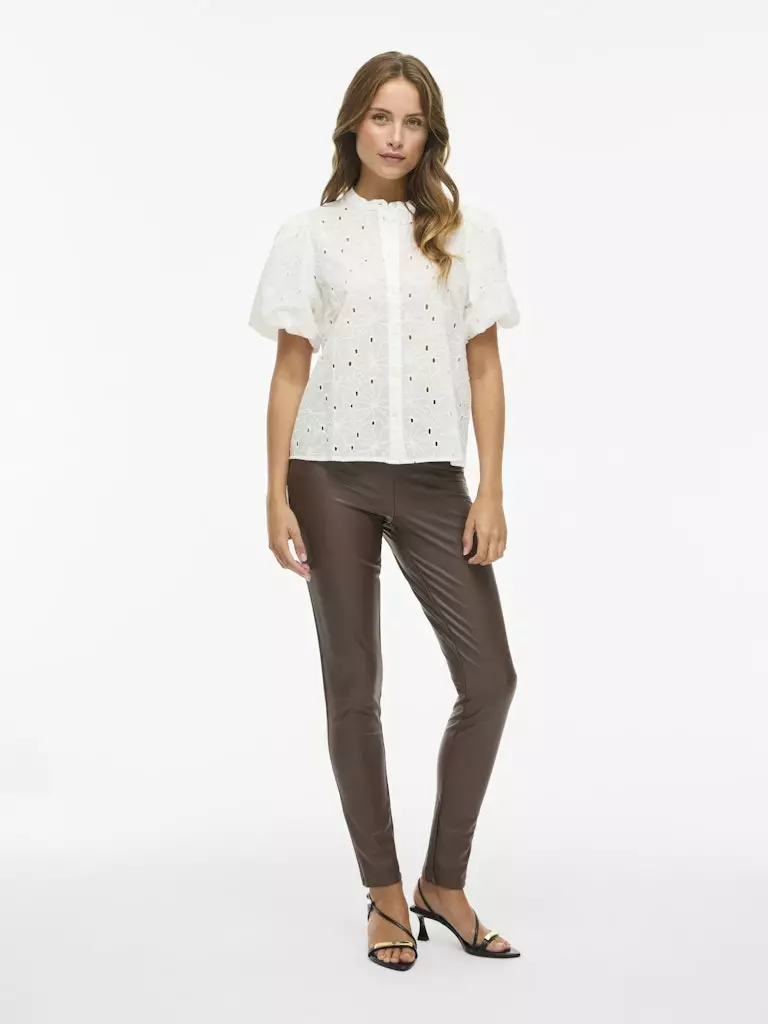 Nämä VILAn Saffron-housut ovat täydellinen lisä asukokonaisuuksiin. Ne on valmistettu joustavasta, pinnoitetusta materiaalista, joka näyttää tyylikkäältä ja tuntuu mukavalta päällä. Housuissa on korkea, joustava kuminauhavyötärö ja kapea, vartalonmyötäinen leikkaus. Ne ovat loistava valinta niin arkeen kuin juhlaankin.