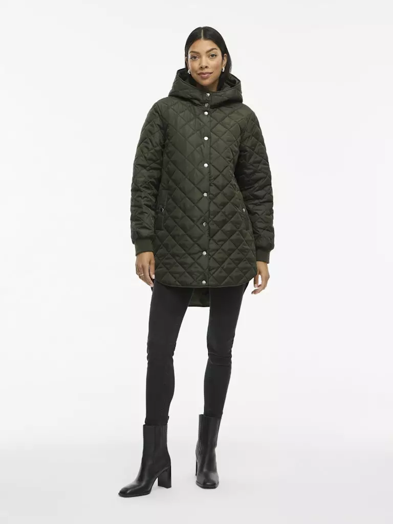 VILA Tate Hupullinen Tikattu Takki – Tyylikäs Ja Monikäyttöinen Hupullinen Takki Vastuullisesta Materiaalista – Nyt Syvän Metsänvihreänä!