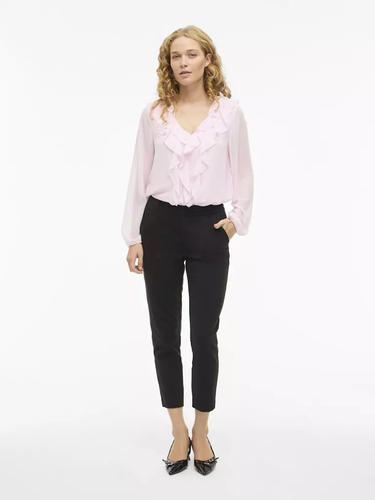 VILA Viane – Herkkä Vaaleanpunainen Röyhelöpaita