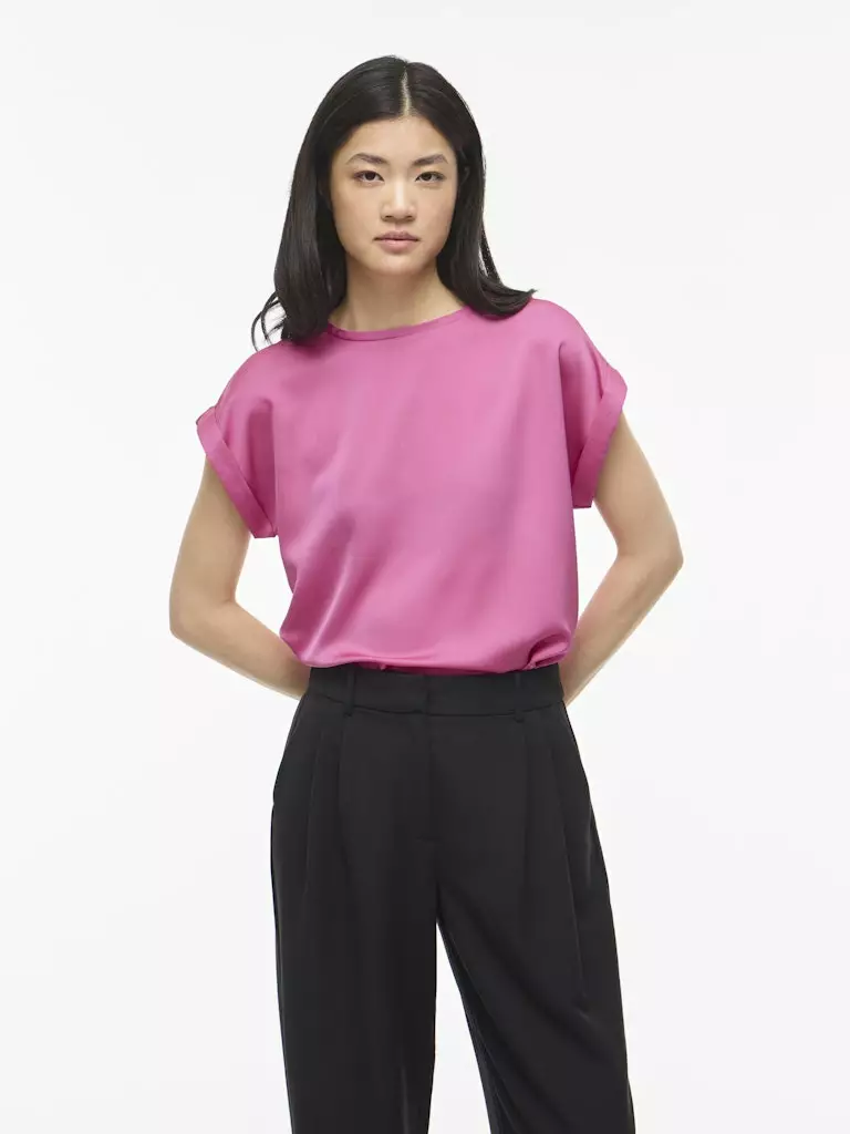 VILA VIELLETTE Kiiltävä Lyhythihainen Toppi – Satiinista hienostuneisuutta ja hehkuvaa väriä