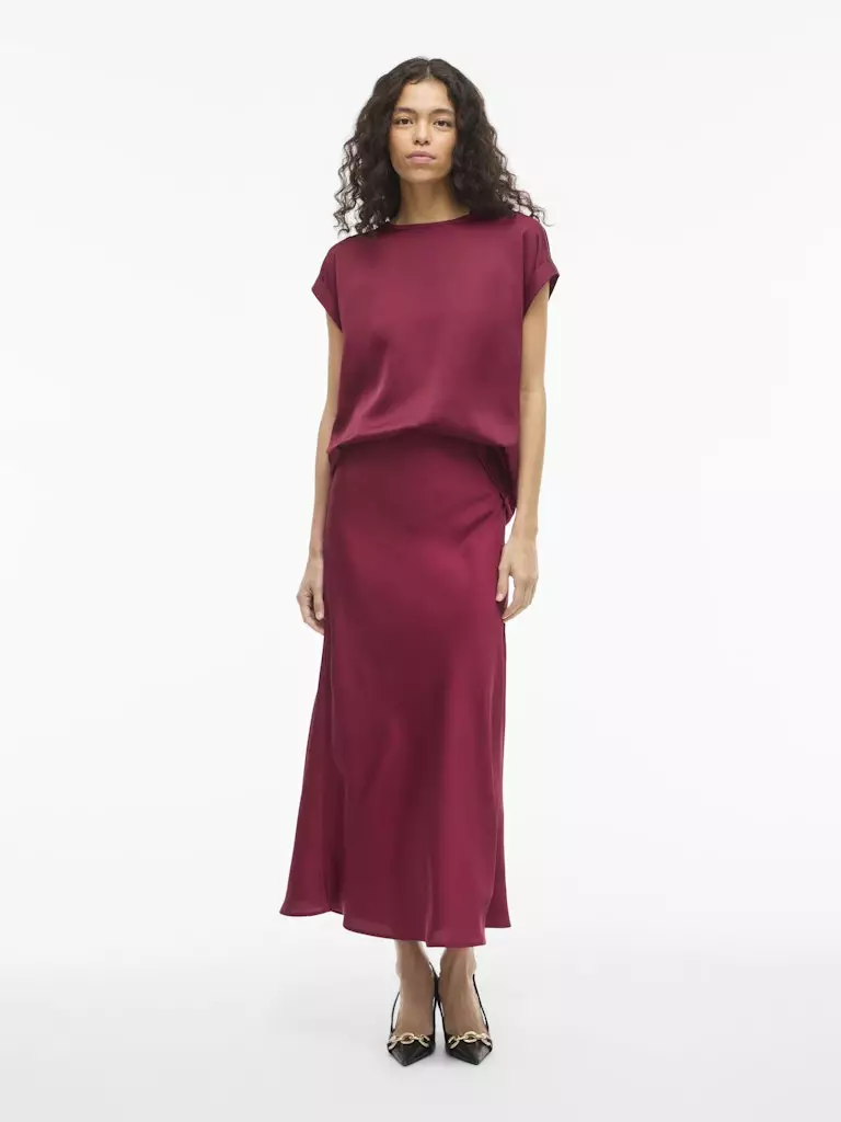 VILA VIELLETTE – Tyylikäs ja Kiiltävä Toppi Syvässä Tummanpunaisessa