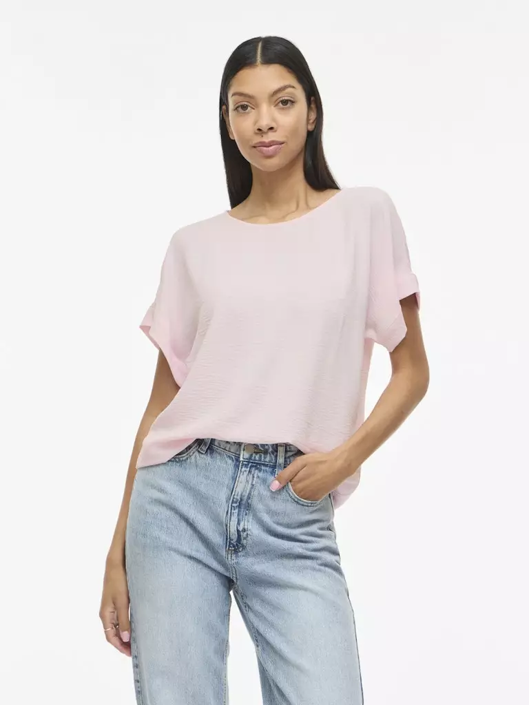 Vila Vijosa on täydellinen valinta sinulle, joka etsit kevyttä, tyylikästä ja ympäristötietoisesti valmistettua yläosaa. Tämä lyhythihainen pusero on vaatekaapin todellinen moniottelija: sen pelkistetty muotoilu ja herkkä vaaleanpunainen sävy (Cherry Blossom) tuovat asuun pehmeyttä ja keväistä raikkautta.