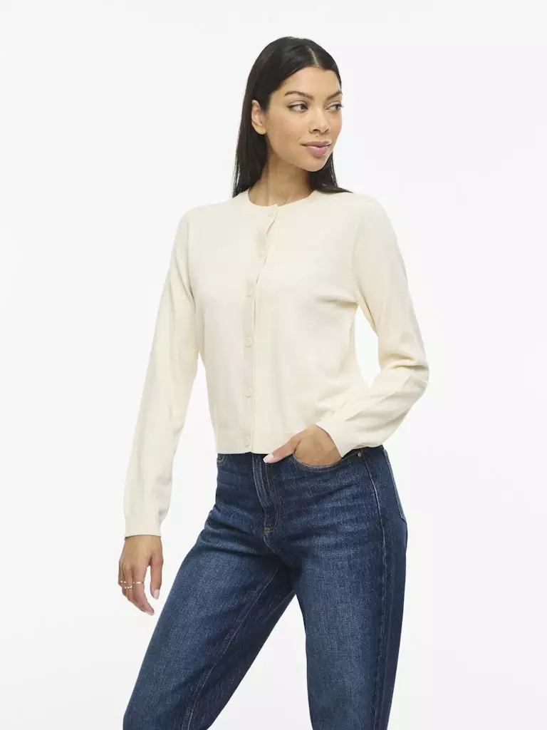 VILA VILOLLO on vaatekaapin todellinen luottoasuste, jossa yhdistyvät skandinaavinen selkeys ja ihana pehmeys. Tämä lyhyt, napeilla varustettu neuletakki on suunniteltu tuomaan lämpöä ja tyyliä asuun kuin asuun. Sen raikas luonnonvalkoinen Sandshell Melange -sävy on helppo yhdistää mihin tahansa värimaailmaan, tehden siitä täydellisen kerrospukeutumisen kulmakiven niin mekon päälle kuin farkkujen pariksi.